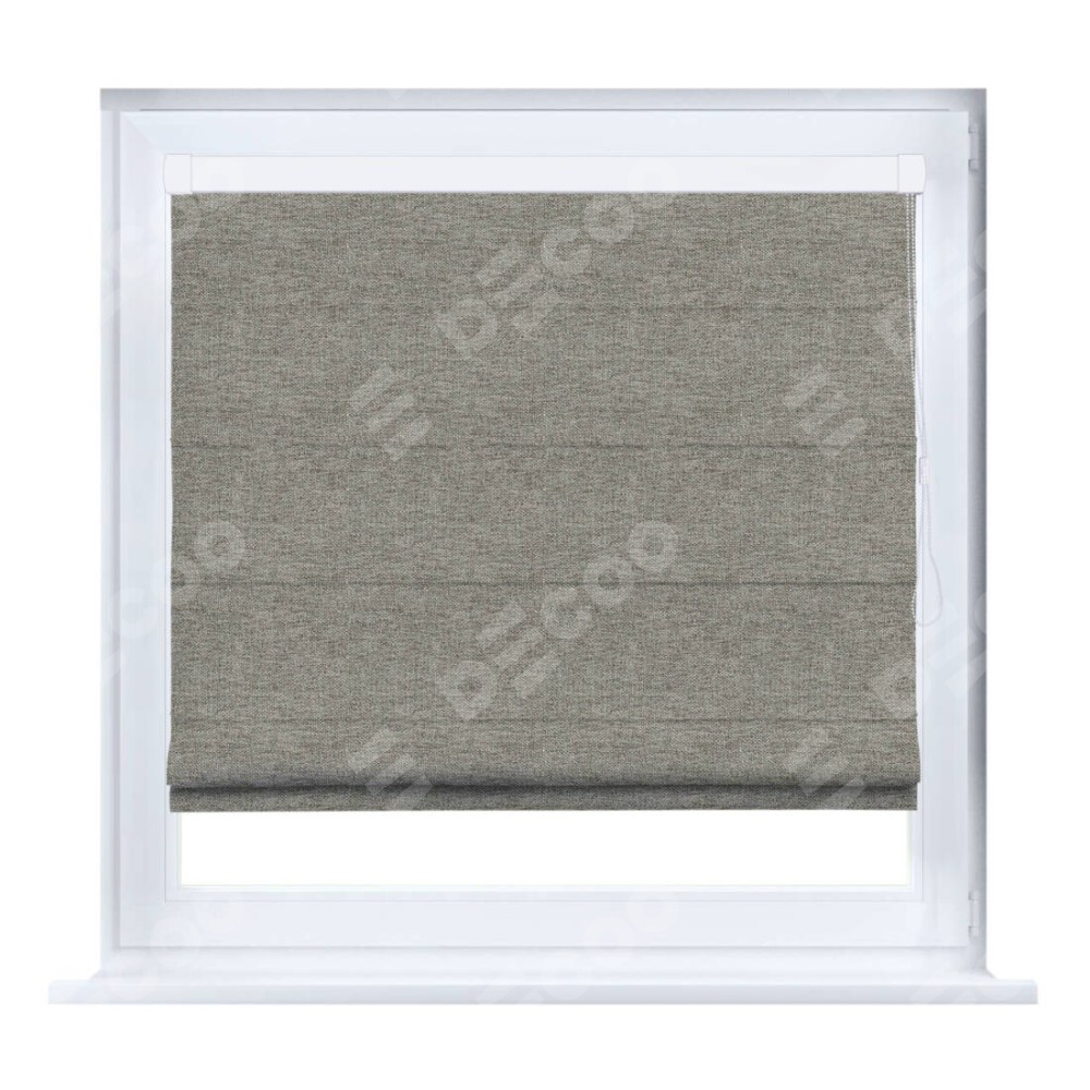 Римская штора производителя «Cortin», устанавливается на створку окна, пошита из ткани стиф димаут серо-коричневый, артикул 44028. Штора шьётся по индивидуальным размерам, для данного типа римской шторы возможная ширина от 35 до 150 см., высота до 250 см.