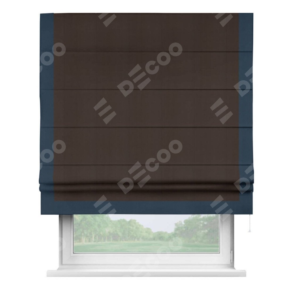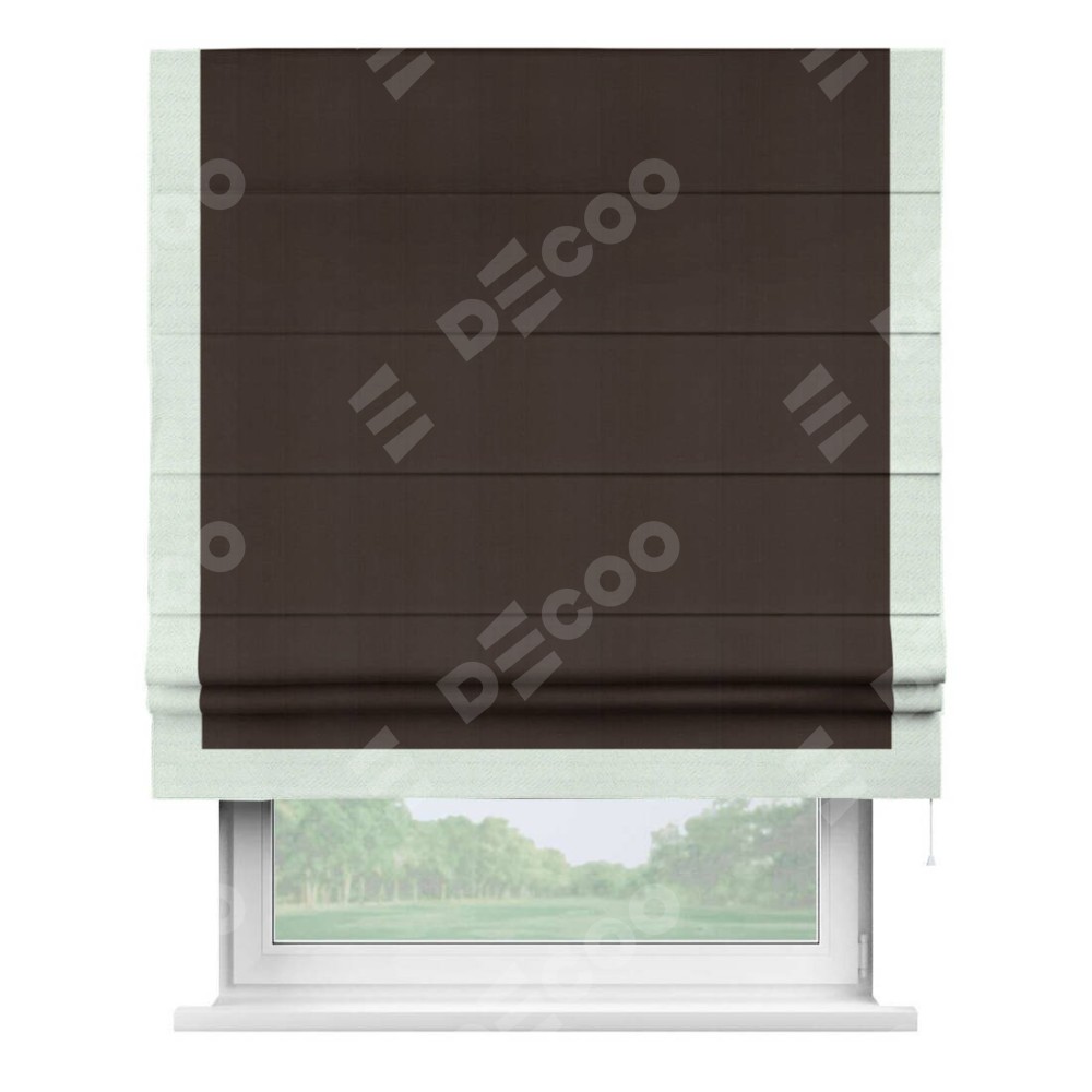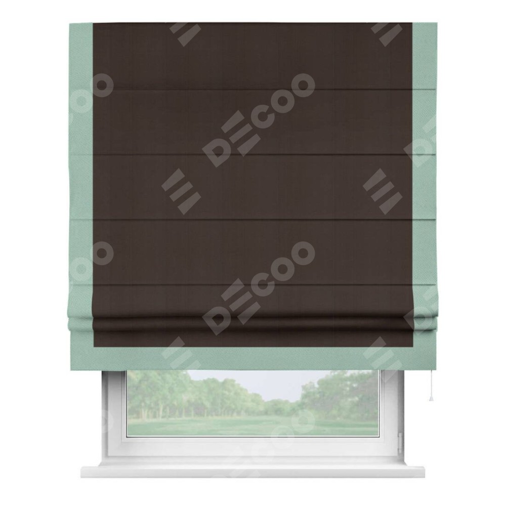 Римская штора производителя «Cortin», используется для проёма, пошита из ткани блэкаут однотонный венге, артикул ткани 88286. Отделка шторы кантом «Виктория», ткань для канта используется из блэкаута однотонного разной расцветки на выбор. Имеет универсальный механизм и подходит для монтажа: на потолок, на стену и в нишу.
