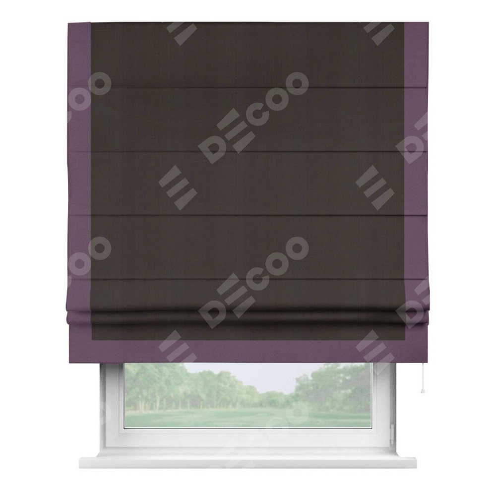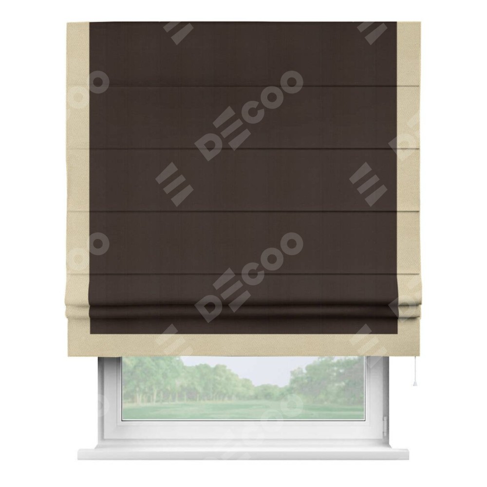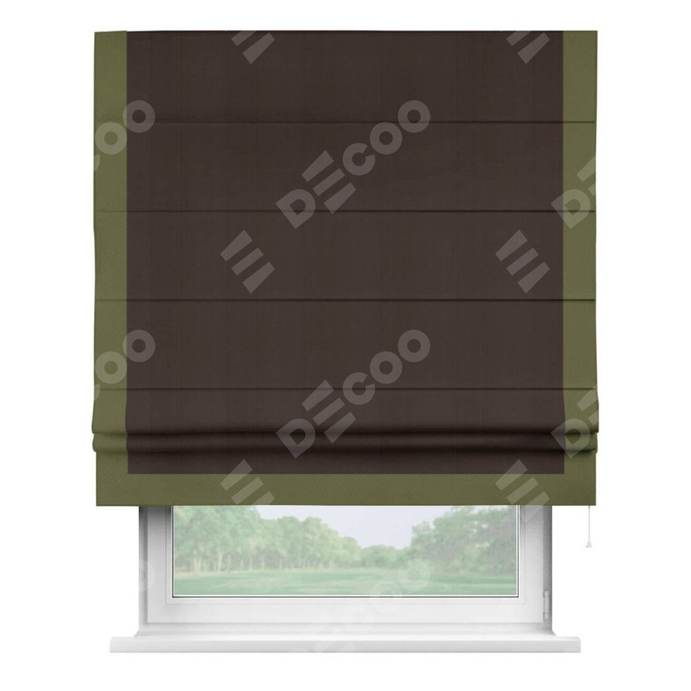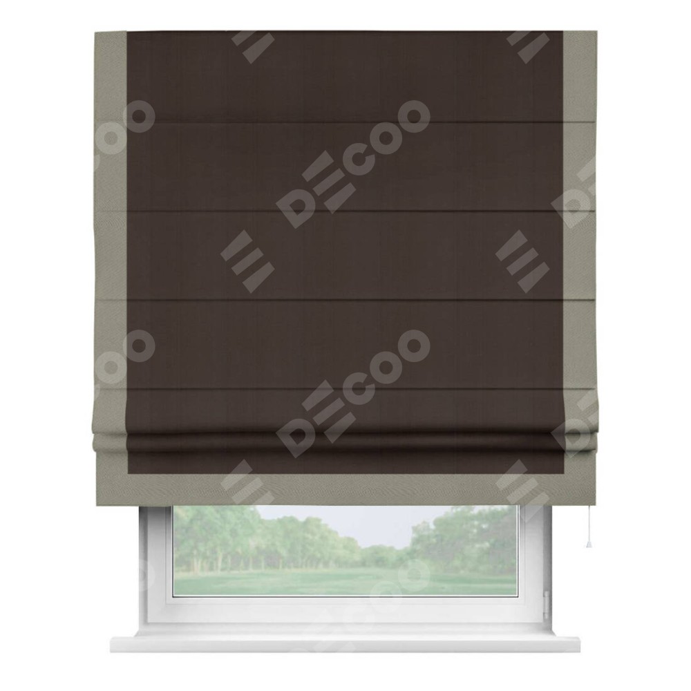 Римская штора производителя «Cortin», используется для проёма, пошита из ткани блэкаут однотонный венге, артикул ткани 88286. Отделка шторы кантом «Виктория», ткань для канта используется из блэкаута однотонного разной расцветки на выбор. Имеет универсальный механизм и подходит для монтажа: на потолок, на стену и в нишу.