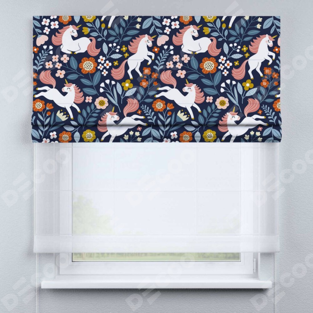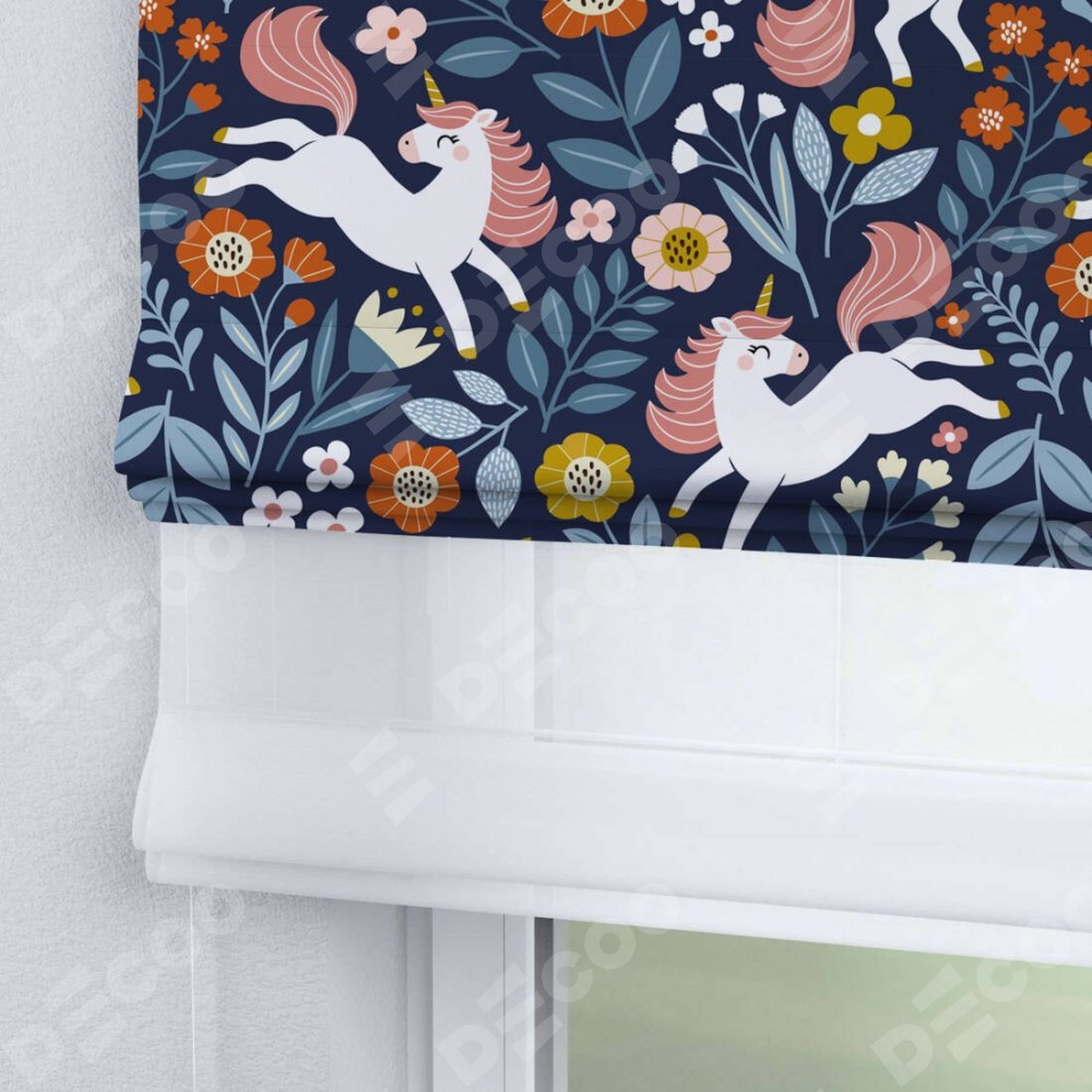 Римская штора «Кортин» день-ночь «Цветы и единороги»