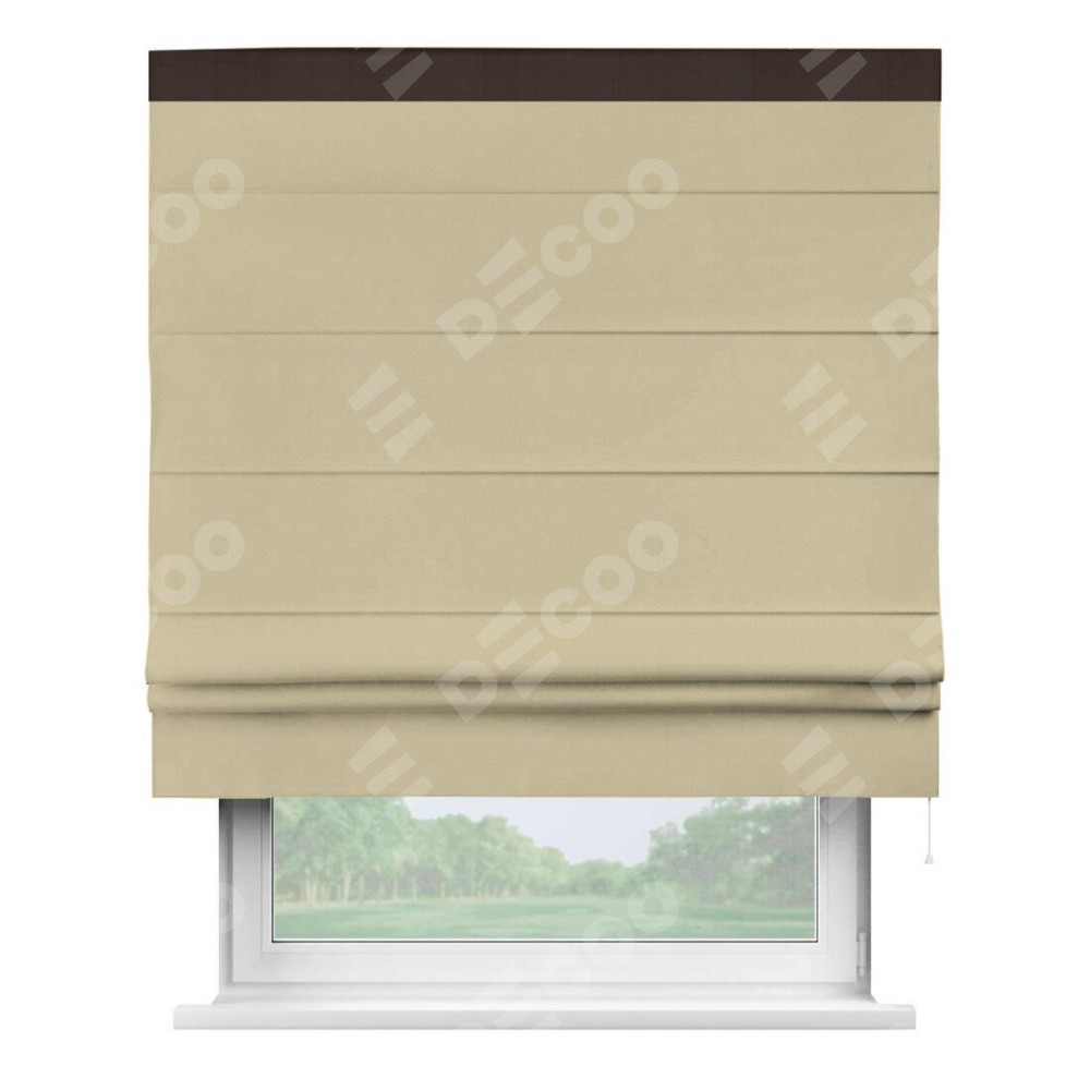 Римская штора производителя «Cortin», используется для проёма, пошита из ткани блэкаут однотонный кофейный, артикул ткани 13130. Отделка шторы кантом «Кинг», ткань для канта используется из блэкаута однотонного разной расцветки на выбор. Имеет универсальный механизм и подходит для монтажа: на потолок, на стену и в нишу.