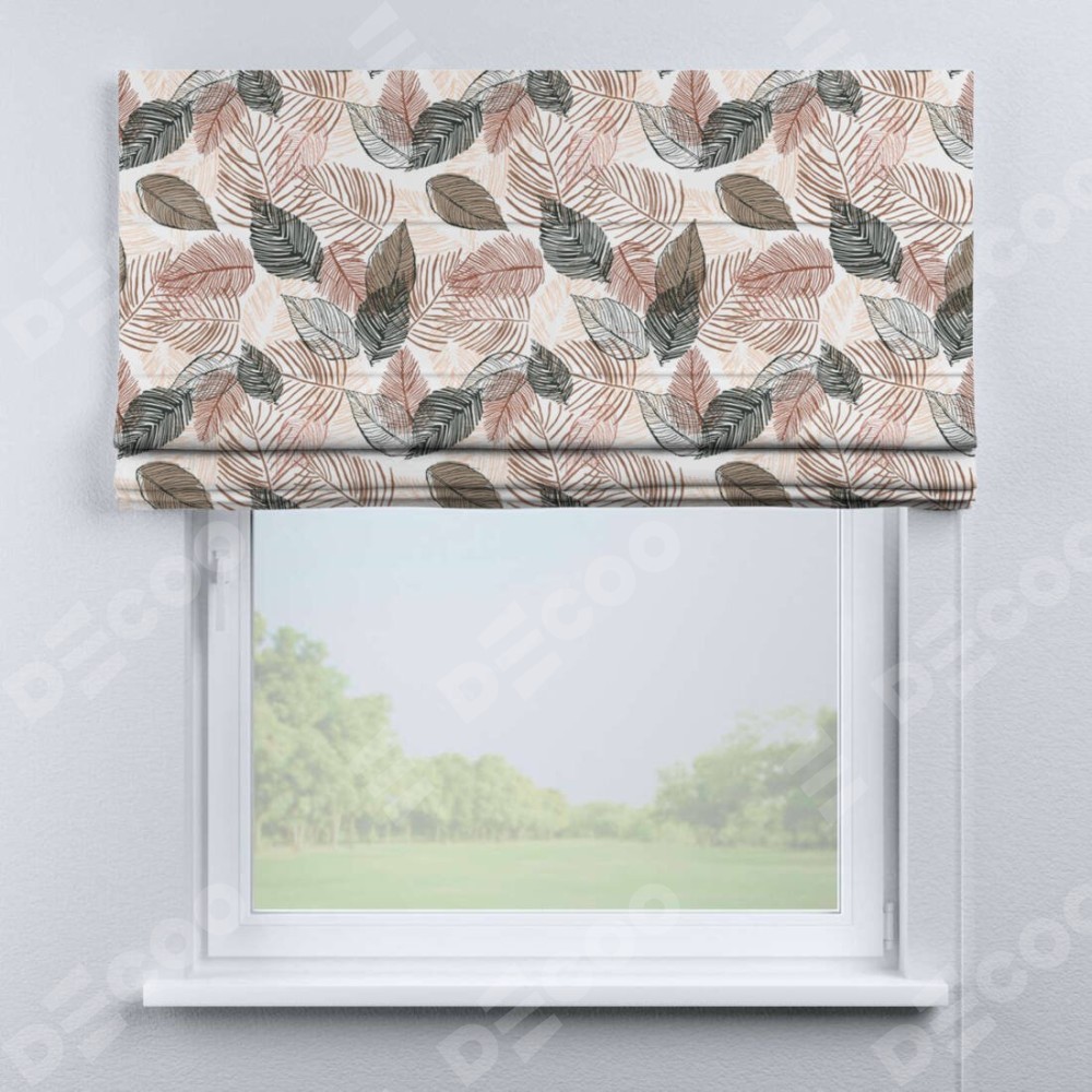 Римская штора производителя «Cortin», используется для проёма, пошита из ткани блэкаут с нанесением сублимационной печати «Осенний лес». Имеет универсальный механизм и подходит для монтажа: на потолок, на стену и в нишу.