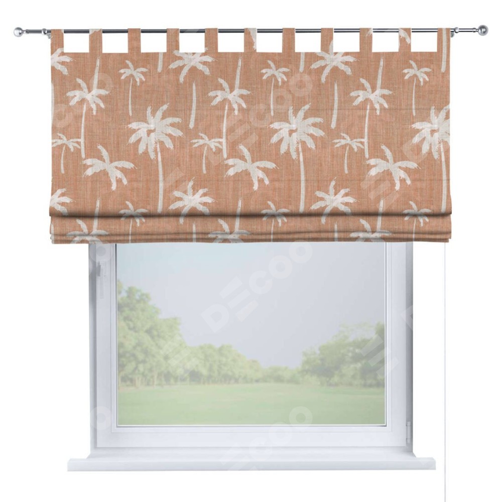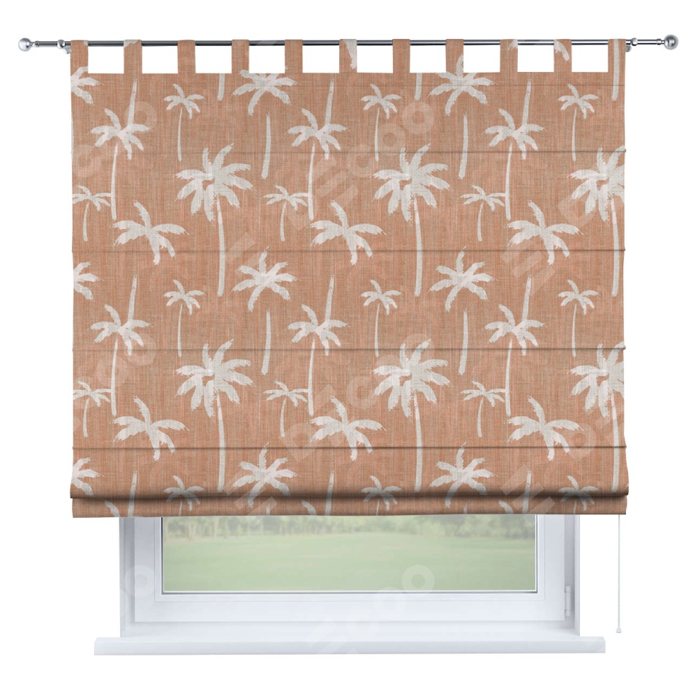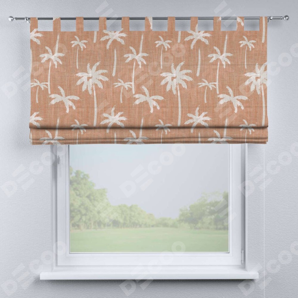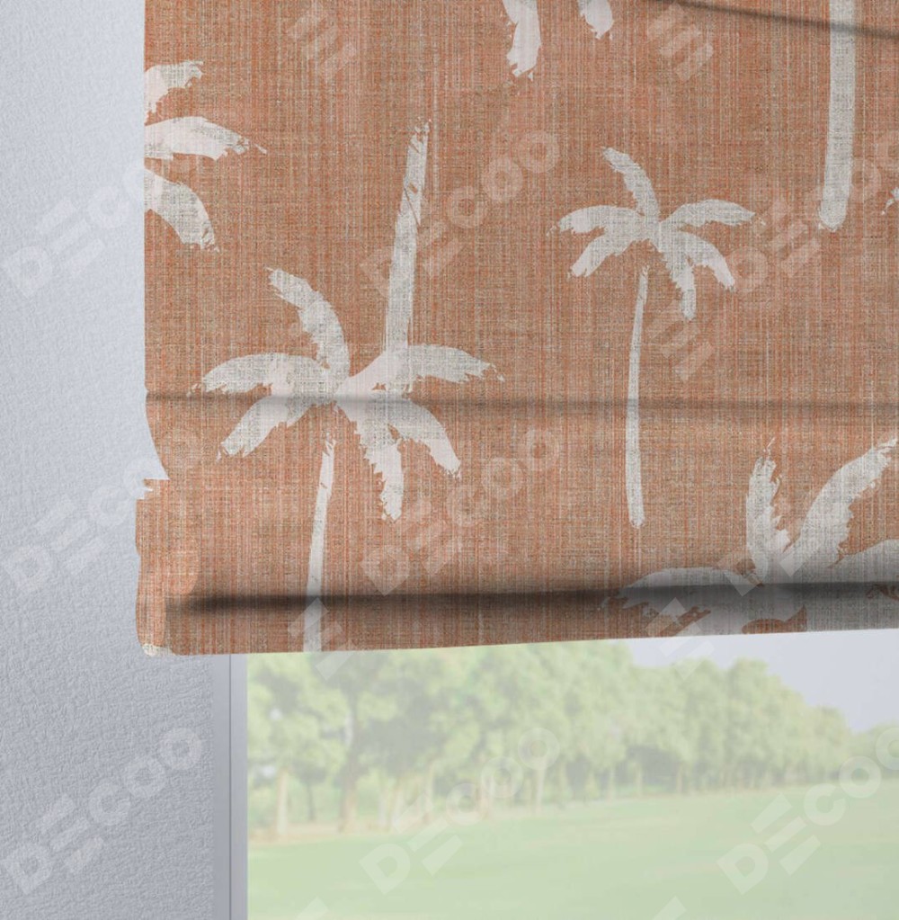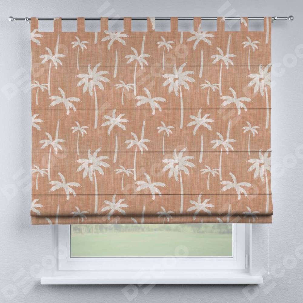 Римская штора производителя «Cortin», используется для проёма, пошита из ткани блэкаут с нанесением сублимационной печати «Пальмы на закате». Данная модель пошита на петлях, комплектуется на выбор круглым карнизом и подходит для монтажа на стену. Римская штора на петлях имеет простую систему регулировки высоты, отличительным преимуществом данной модели является простой способ монтажа. Достаточно повесить ее на трубу и штора готова!