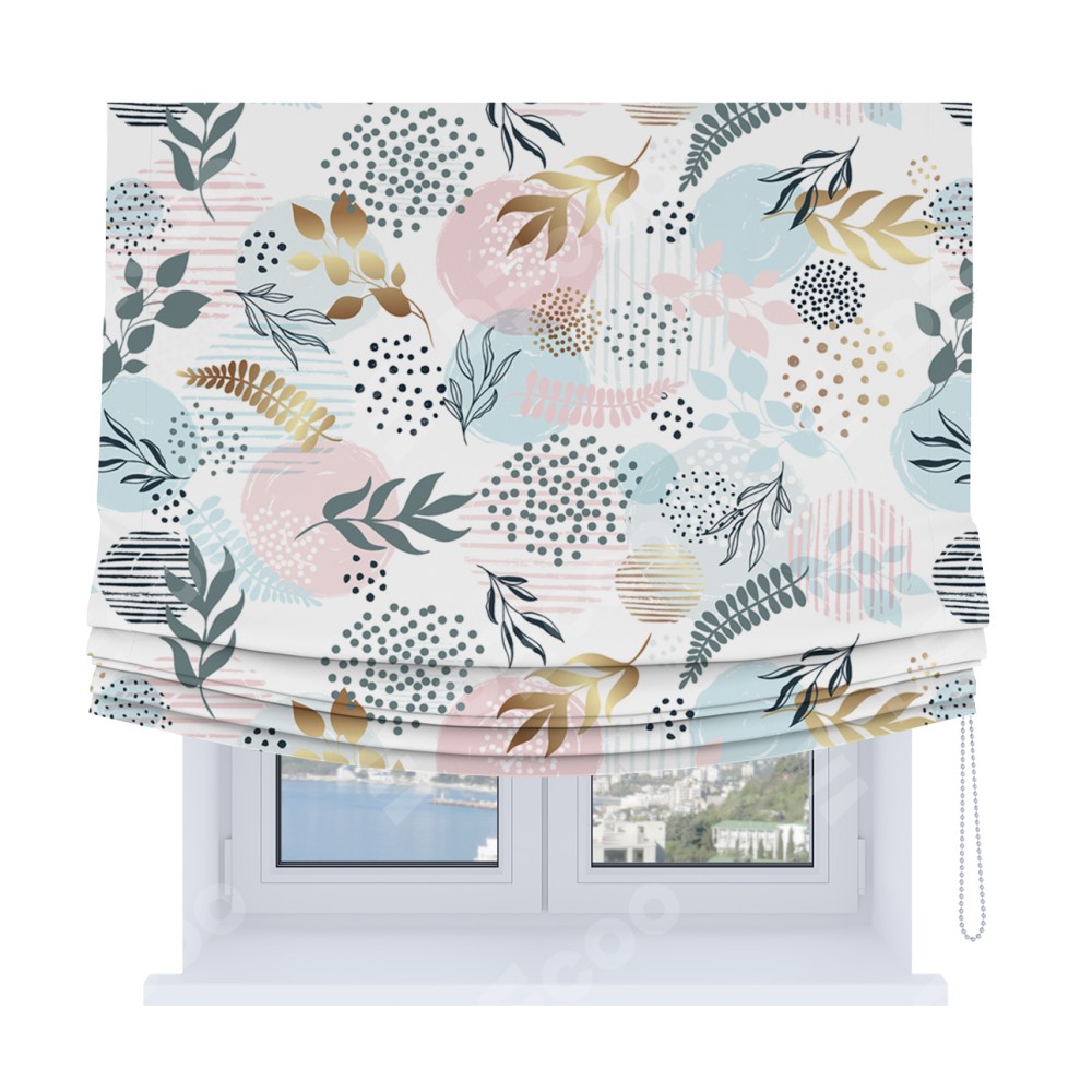 Римская штора Soft с мягкими складками, «Точки и листочки»
