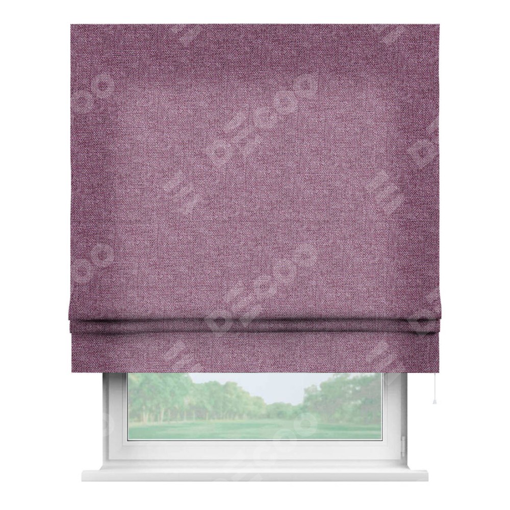 Римская штора производителя «Cortin», используется для проёма, пошита из ткани лён кашемир сиреневый, артикул ткани 21620. Имеет универсальный механизм и подходит для монтажа: на потолок, на стену и в нишу.