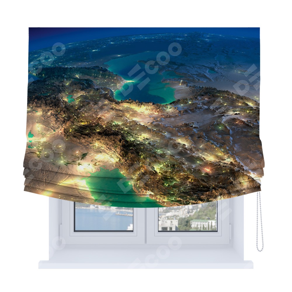 Римская штора Soft производителя «Cortin», используется для проёма, пошита из ткани блэкаут с нанесением сублимационной печати «Ночные огни». Имеет универсальный механизм и подходит для монтажа: на потолок, на стену и в нишу. В отличие от стандартных римских штор, римская штора Soft не имеет горизонтальных вставок и нижнего отвеса. Это позволяет ткани произвольно драпироваться в свободные мягкие складки.