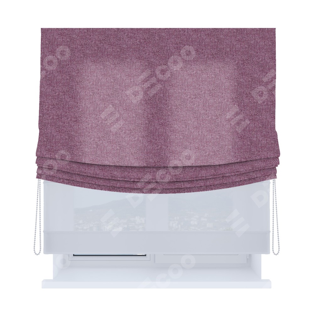 Римская штора день-ночь производителя «Cortin», используется для проёма, пошита из двух полотен, с лицевой стороны лён кашемир сиреневый артикул 21620, вторая ткань тюль (по стандарту комплектуется тюль белого цвета артикул V-01). Имеет универсальный механизм и подходит для монтажа: на потолок, на стену и в нишу. Удобное управление каждой шторой отдельно.