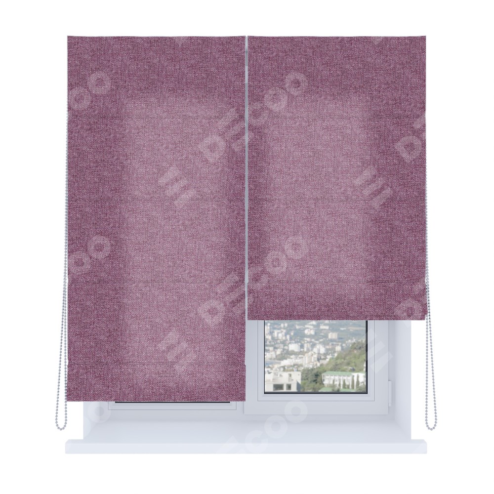 Римская штора производителя «Cortin», используется для проёма, пошита из ткани лён кашемир сиреневый, артикул ткани 21620. Имеет универсальный механизм и подходит для монтажа: на потолок, на стену и в нишу. Удобное управление каждой шторой отдельно.