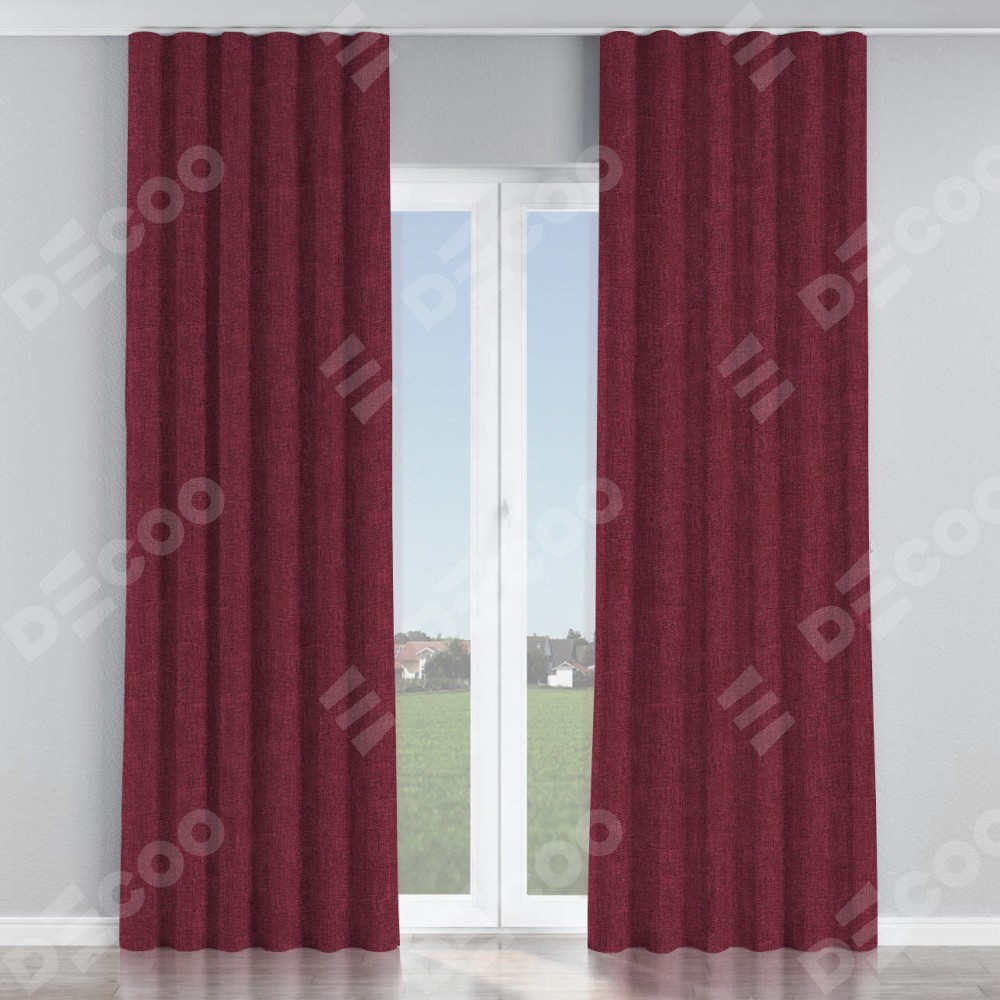 Комплект прямых штор, от производителя «Cortin», пошиты из ткани лён кашемир бордовый, артикул ткани 21621. С изнаночной стороны в верхней части штор пристрачивается шторная лента с декоративными складками «Волна». Для создания элегантных складок прямые шторы шьются по стандарту с коэффициентом 1:2 (на 100 см. ширины проёма 200 см. ширины ткани).