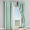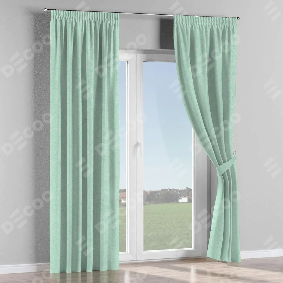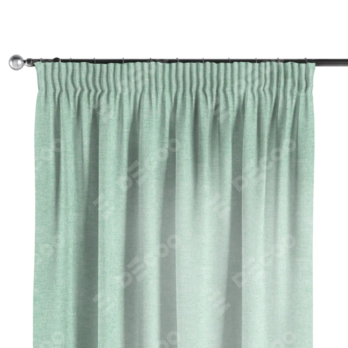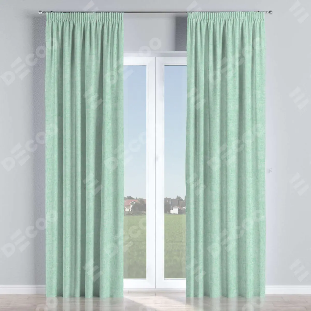 Комплект прямых штор, от производителя «Cortin», пошиты из ткани лён кашемир мятный, артикул ткани 21617. С изнаночной стороны в верхней части штор пристрачивается шторная лента с декоративными складками «Карандаш». Для создания элегантных складок прямые шторы шьются по стандарту с коэффициентом 1:2 (на 100 см. ширины проёма 200 см. ширины ткани).