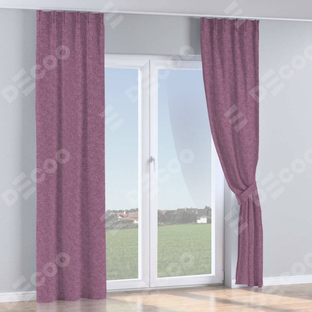 Комплект прямых штор, от производителя «Cortin», пошиты из ткани лён кашемир сиреневый, артикул ткани 21620. С изнаночной стороны в верхней части штор пристрачивается шторная лента с декоративными складками «Кустик». Для создания элегантных складок прямые шторы шьются по стандарту с коэффициентом 1:2 (на 100 см. ширины проёма 200 см. ширины ткани).