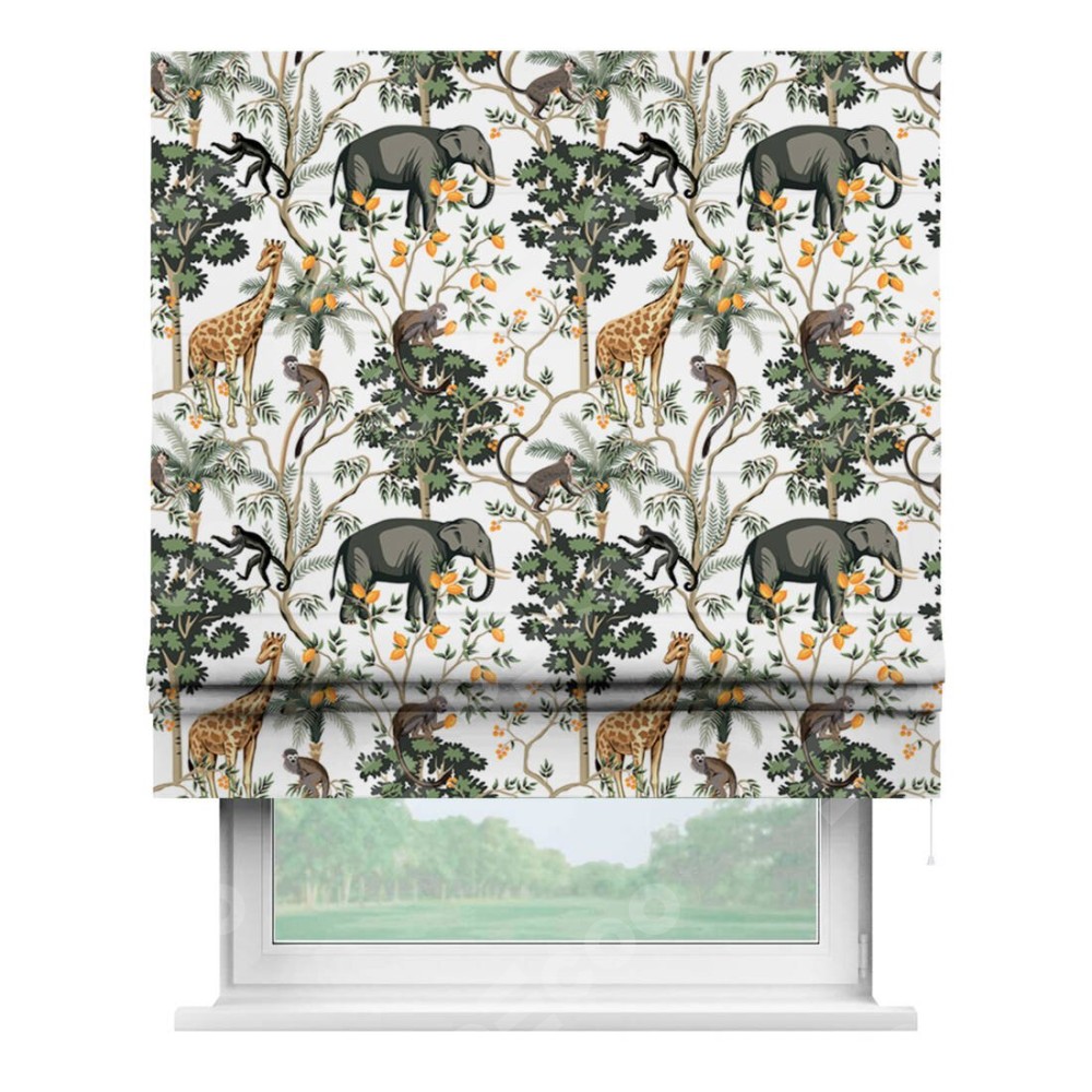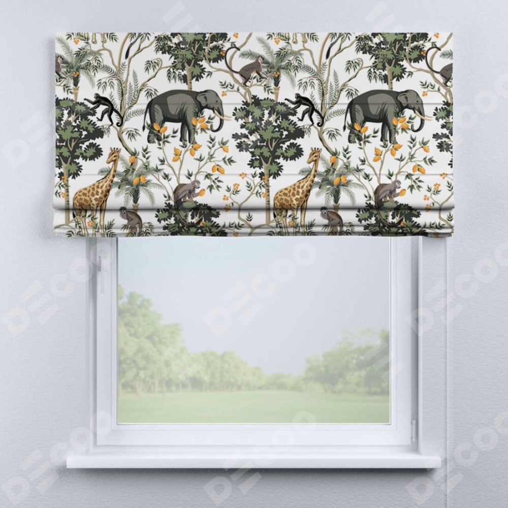 Римская штора производителя «Cortin», используется для проёма, пошита из ткани блэкаут с нанесением сублимационной печати «Африканские равнины». Имеет универсальный механизм и подходит для монтажа: на потолок, на стену и в нишу.