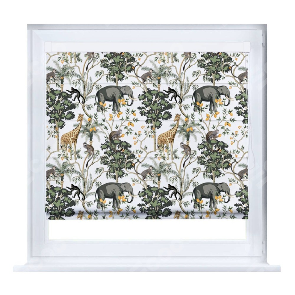 Римская штора производителя «Cortin», устанавливается на створку окна, пошита из ткани блэкаут с нанесением сублимационной печати «Африканские равнины». Штора шьётся по индивидуальным размерам, для данного типа римской шторы возможная ширина от 35 до 150 см., высота до 250 см.
