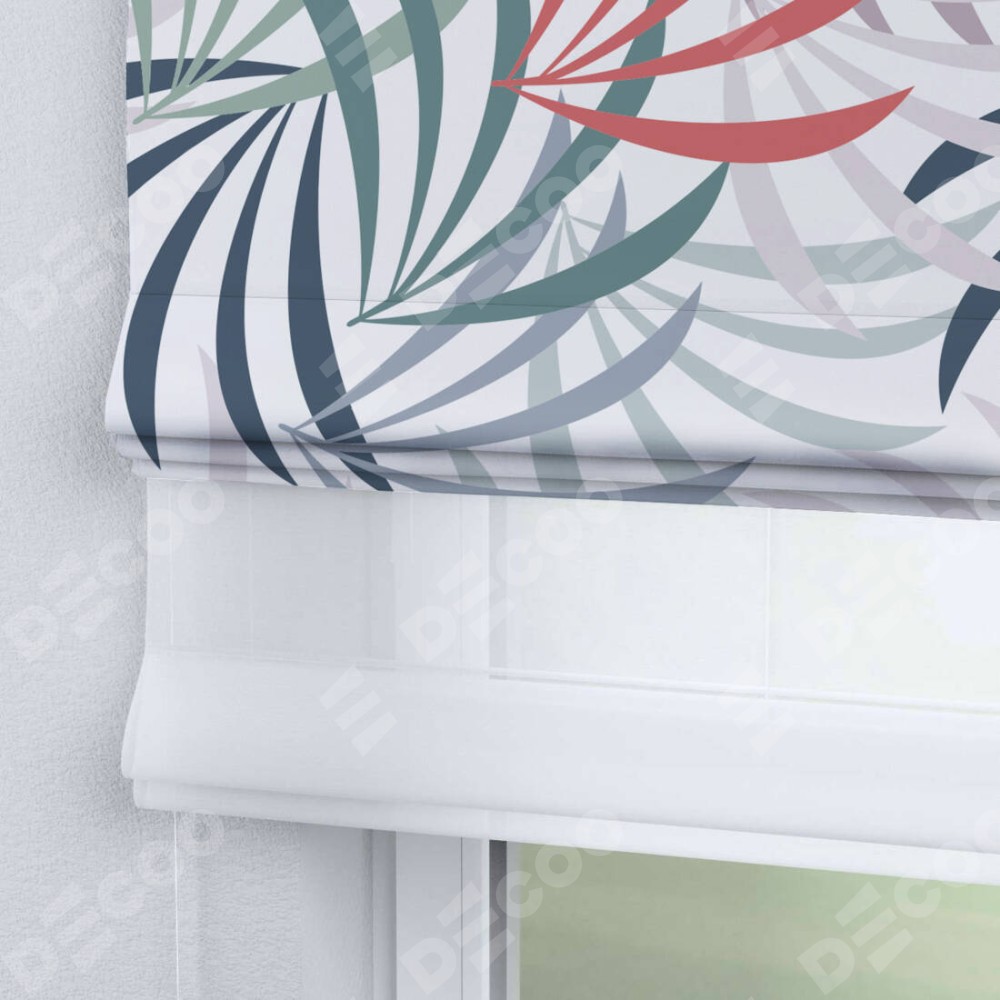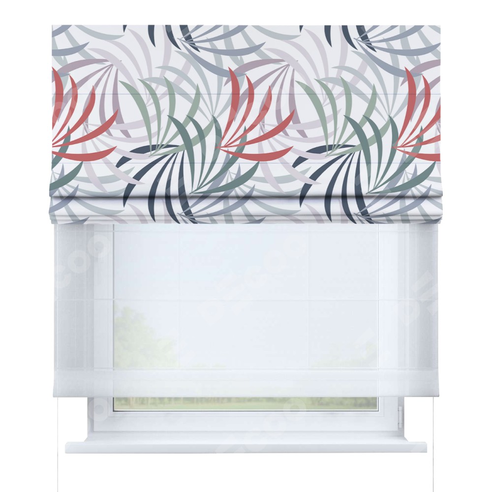 Римская штора день-ночь производителя «Cortin», используется для проёма, пошита из двух полотен, с лицевой блэкаут с нанесением сублимационной печати «Летняя прохлада», вторая ткань тюль (по стандарту комплектуется тюль белого цвета артикул V-01). Имеет универсальный механизм и подходит для монтажа: на потолок, на стену и в нишу.