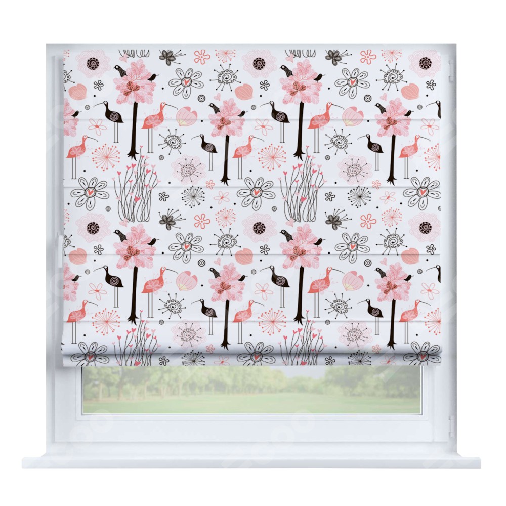 Римская штора «Кортин» на створку «Любопытные птички»
