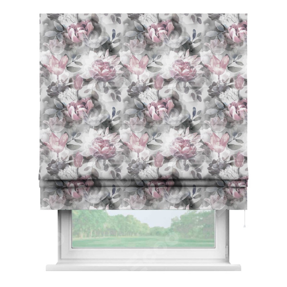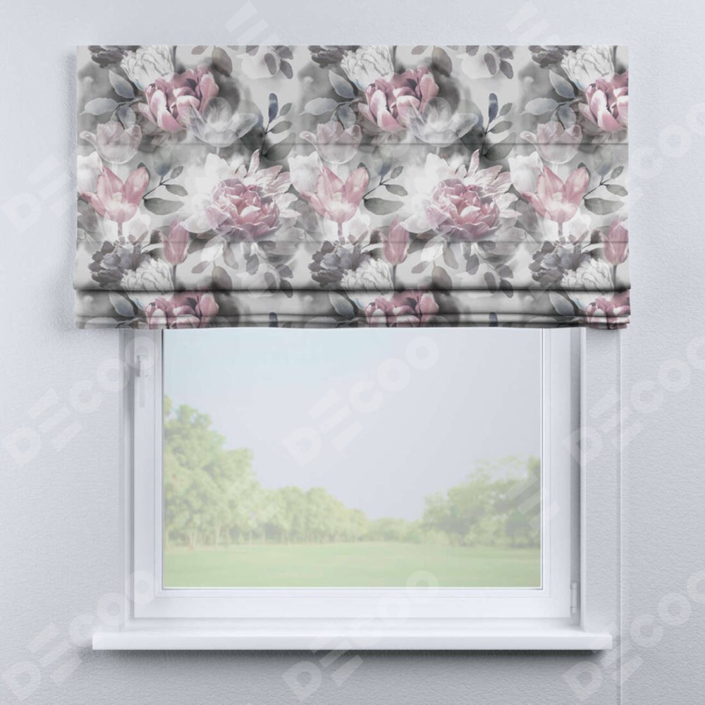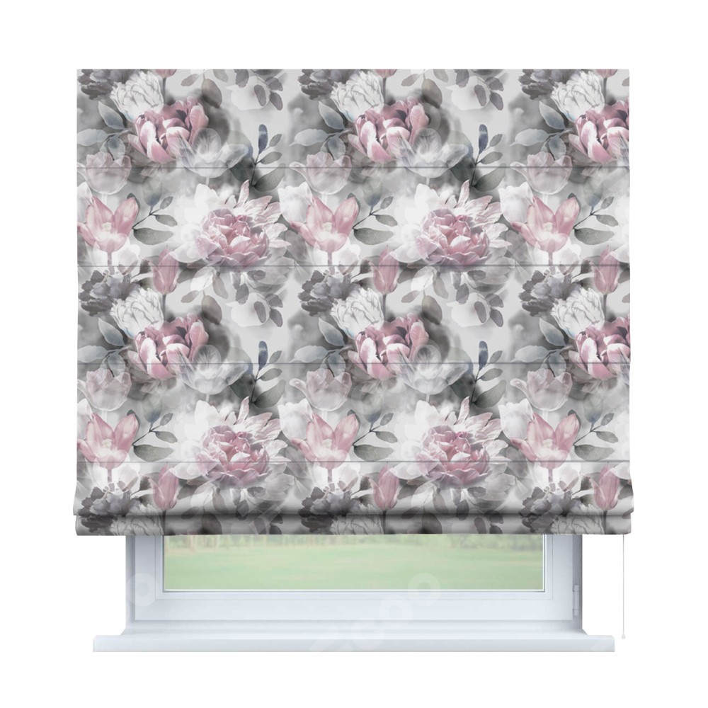 Римская штора производителя «Cortin», используется для проёма, пошита из ткани блэкаут с нанесением сублимационной печати «Цветочная композиция». Имеет универсальный механизм и подходит для монтажа: на потолок, на стену и в нишу.