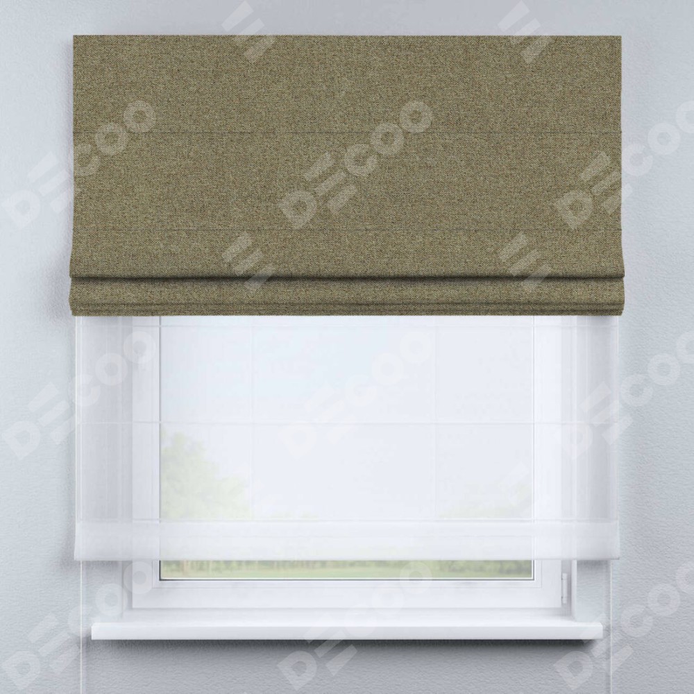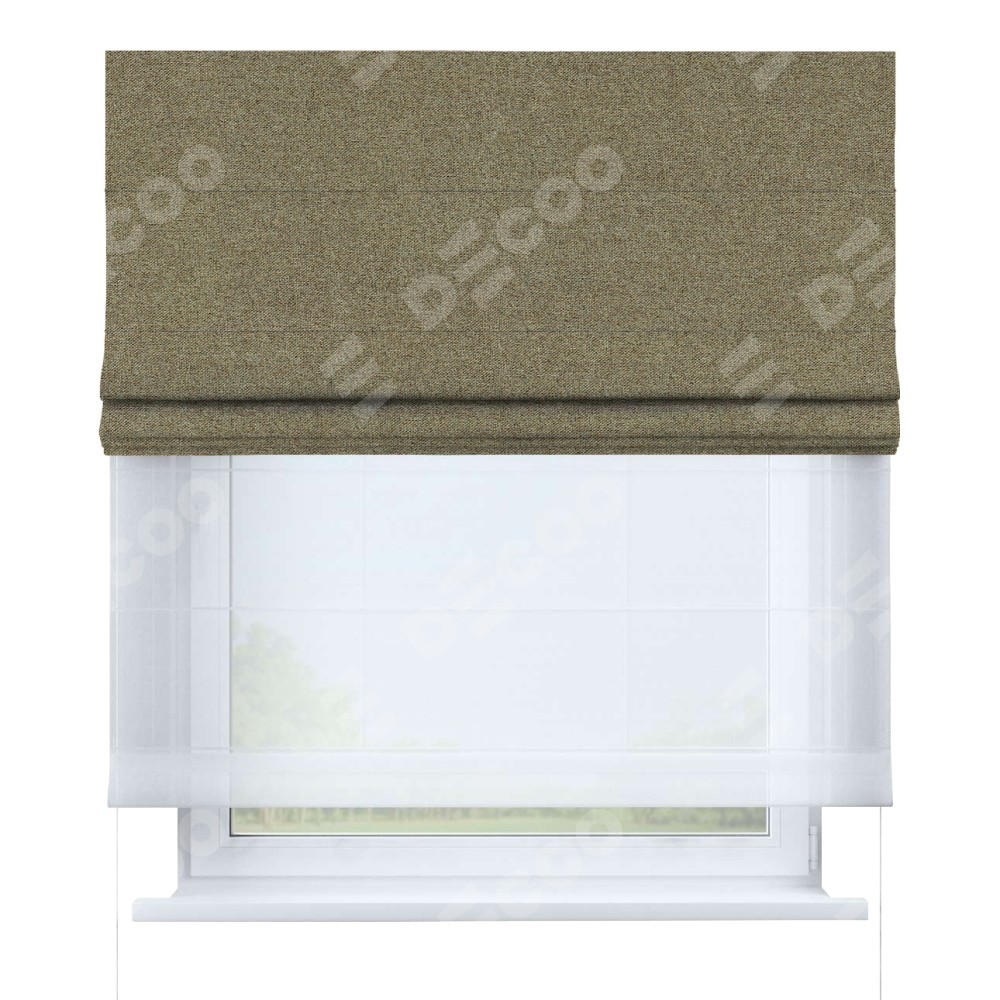Римская штора день-ночь производителя «Cortin», используется для проёма, пошита из двух полотен, с лицевой стороны лён блэкаут бежевый артикул 69435, вторая ткань тюль (по стандарту комплектуется тюль белого цвета артикул V-01). Имеет универсальный механизм и подходит для монтажа: на потолок, на стену и в нишу.