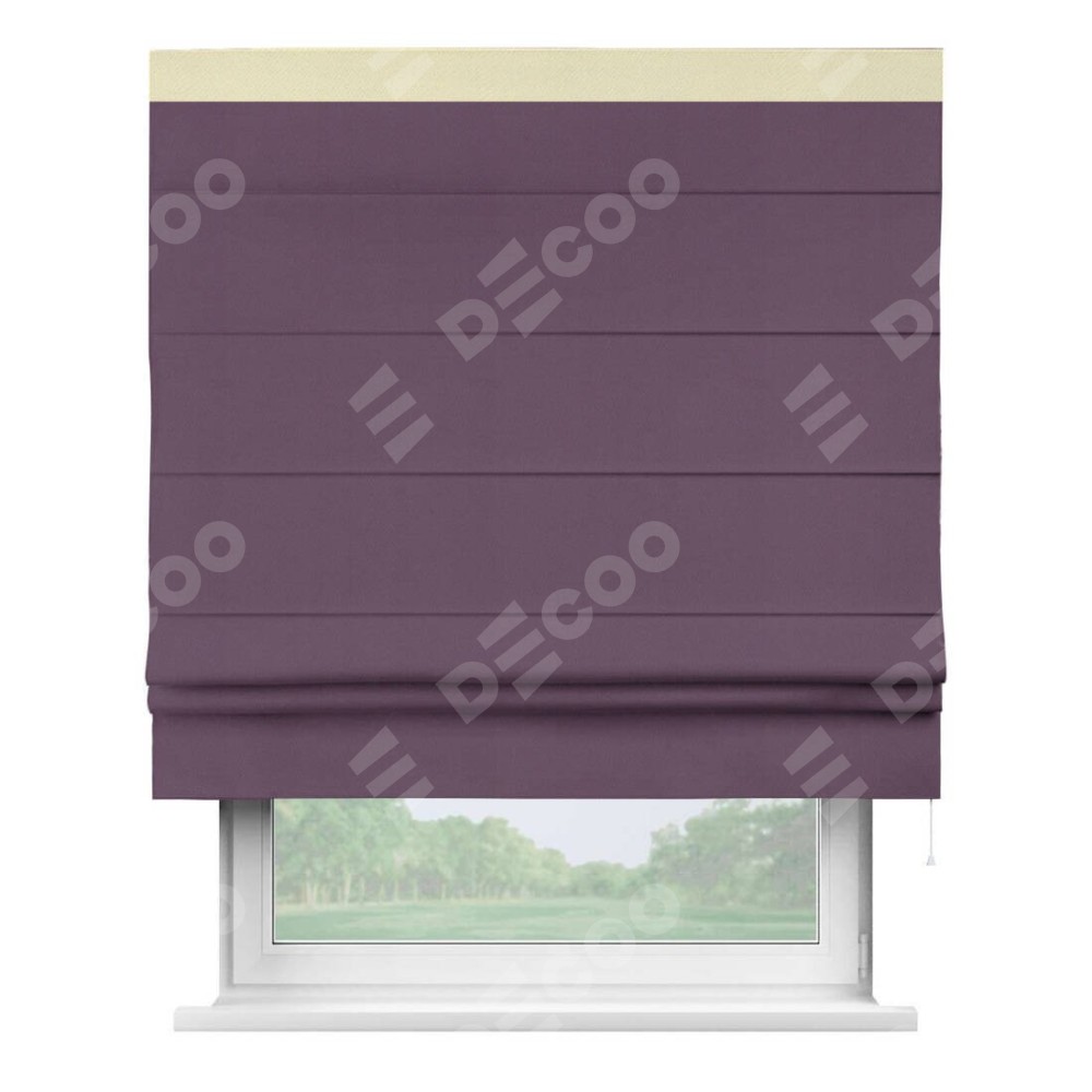 Римская штора производителя «Cortin», используется для проёма, пошита из ткани блэкаут однотонный фуксия, артикул ткани 88303. Отделка шторы кантом «Кинг», ткань для канта используется из блэкаута однотонного разной расцветки на выбор. Имеет универсальный механизм и подходит для монтажа: на потолок, на стену и в нишу.