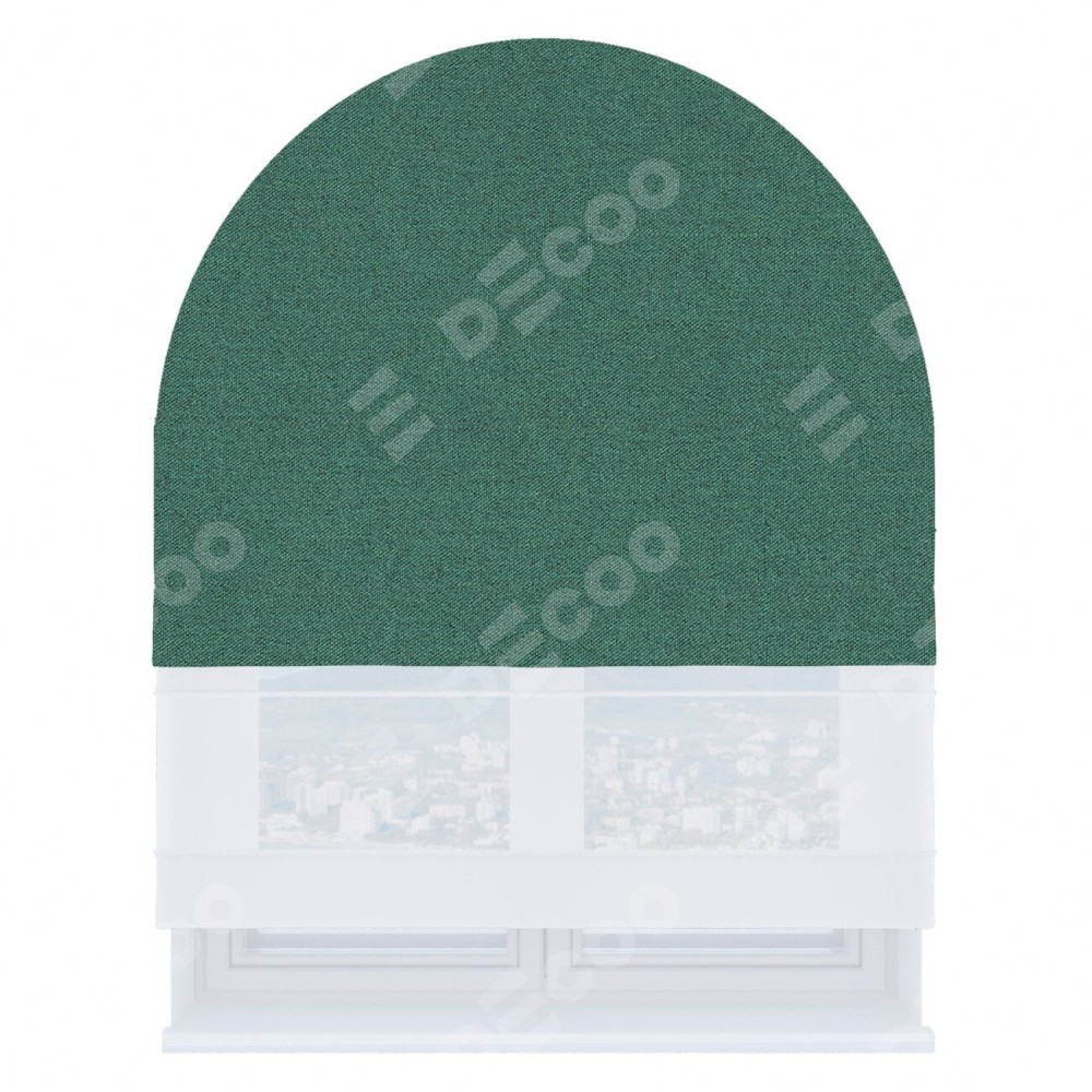 Римская штора день-ночь производителя «Cortin», используется для арочного проёма, пошита из двух полотен, с лицевой стороны лён блэкаут бирюзовый артикул 69517, вторая ткань тюль (по стандарту комплектуется тюль белого цвета артикул V-01). Штора шьётся по индивидуальным размерам, для данного типа римской шторы возможная ширина от 60 до 300 см. Удобное управление каждой шторой отдельно.