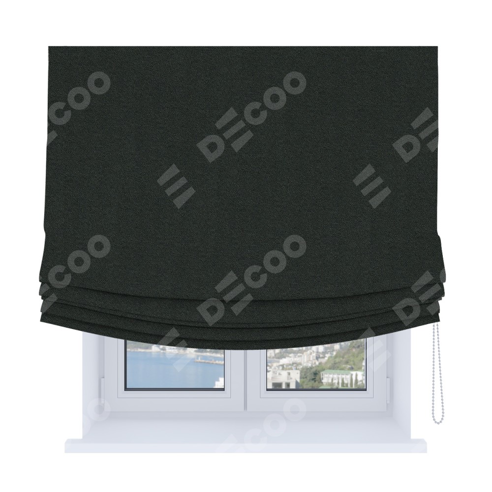 Римская штора Soft производителя «Cortin», используется для проёма, пошита из ткани лён блэкаут графит, артикул ткани 69448. Имеет универсальный механизм и подходит для монтажа: на потолок, на стену и в нишу. В отличие от стандартных римских штор, римская штора Soft не имеет горизонтальных вставок и нижнего отвеса. Это позволяет ткани произвольно драпироваться в свободные мягкие складки.