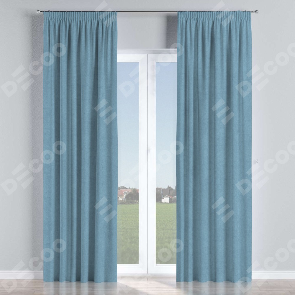 Комплект штор на тесьме «Карандаш», лён блэкаут голубой