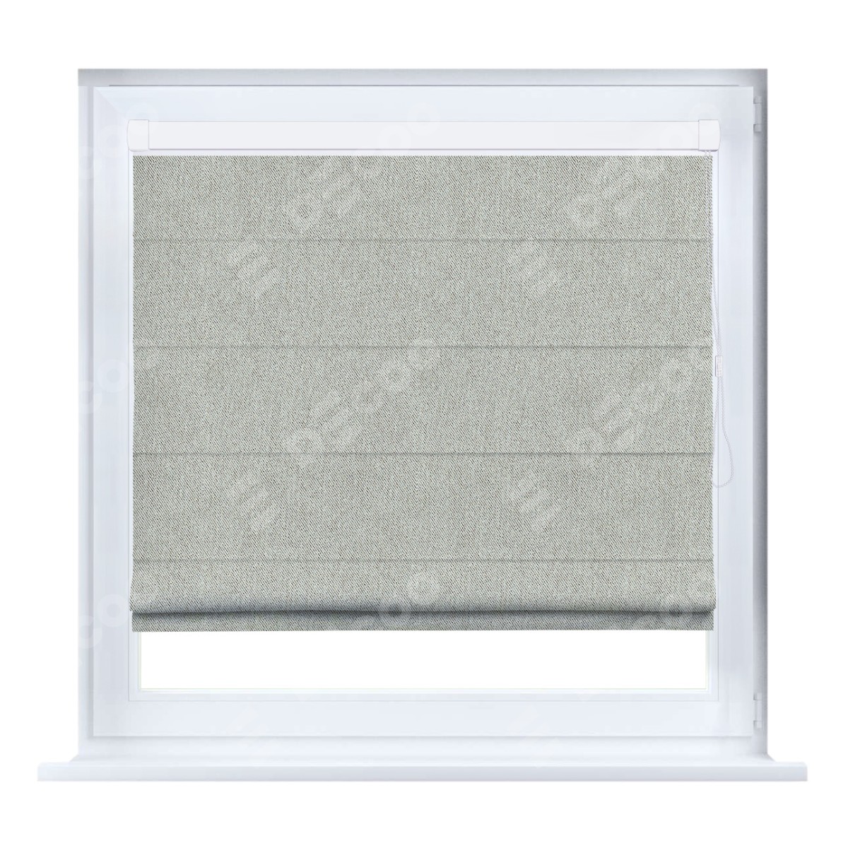 Римская штора кассетного типа, производителя «Cortin», устанавливается только на пластиковые окна и прилегает к стеклопакету, пошита из ткани твид блэкаут коричнево-серый, артикул 21574.