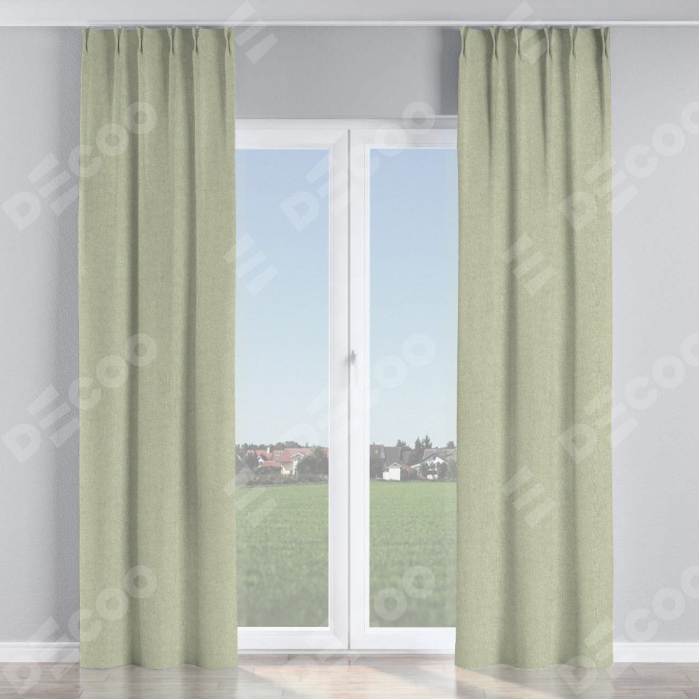 Комплект прямых штор, от производителя «Cortin», пошиты из ткани лён блэкаут серо-бежевый, артикул ткани 69450. С изнаночной стороны в верхней части штор пристрачивается шторная лента с декоративными складками «Кустик». Для создания элегантных складок прямые шторы шьются по стандарту с коэффициентом 1:2 (на 100 см. ширины проёма 200 см. ширины ткани).