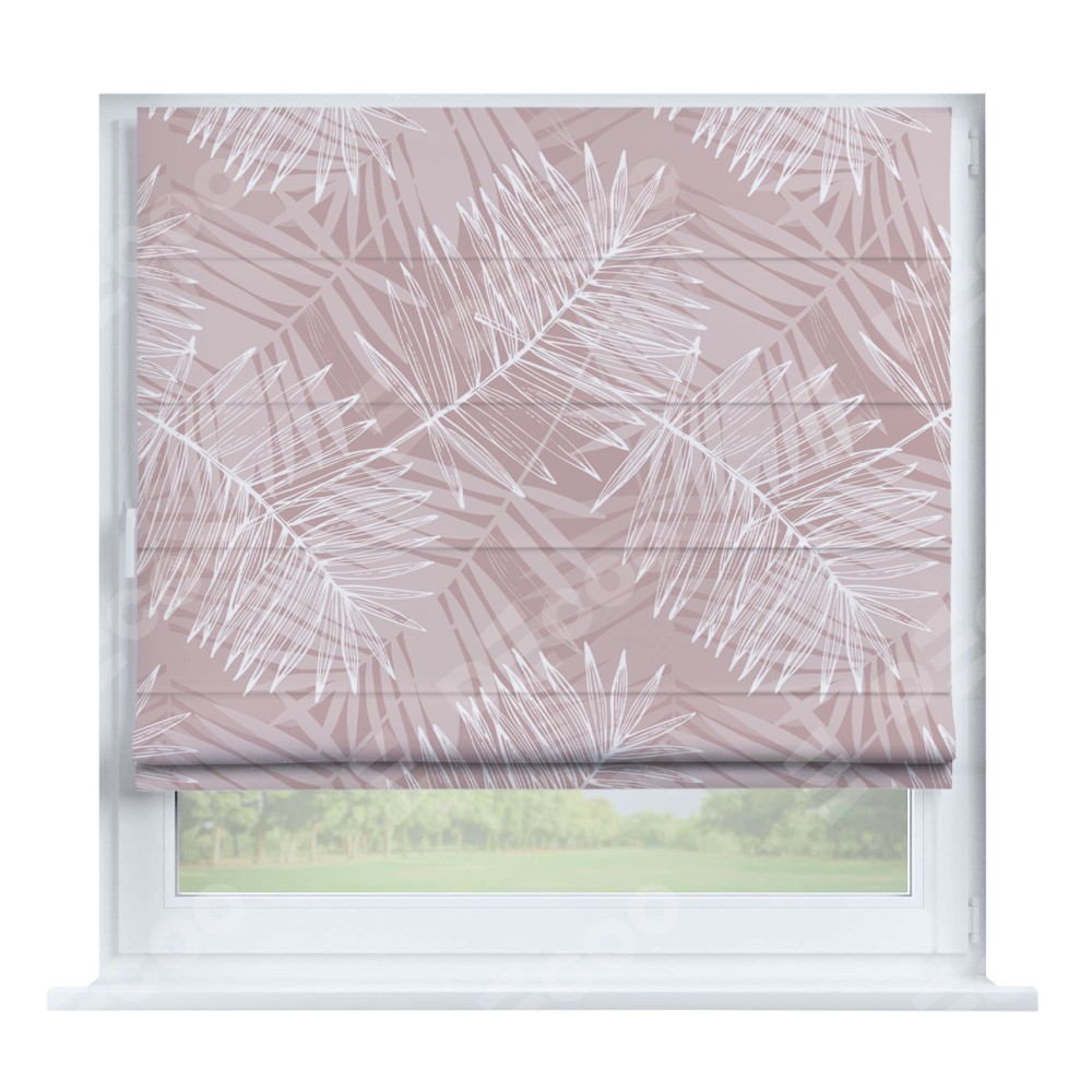 Римская штора производителя «Cortin», устанавливается на створку окна, пошита из ткани блэкаут с нанесением сублимационной печати «Бежевые тропики». Штора шьётся по индивидуальным размерам, для данного типа римской шторы возможная ширина от 35 до 150 см., высота до 250 см.