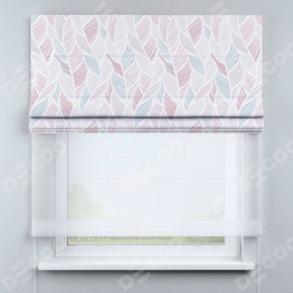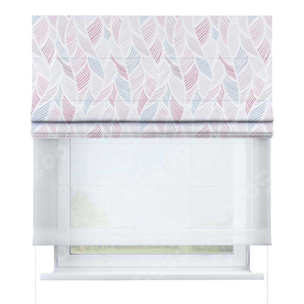 Римская штора день-ночь производителя «Cortin», используется для проёма, пошита из двух полотен, с лицевой блэкаут с нанесением сублимационной печати «Релакс», вторая ткань тюль (по стандарту комплектуется тюль белого цвета артикул V-01). Имеет универсальный механизм и подходит для монтажа: на потолок, на стену и в нишу.
