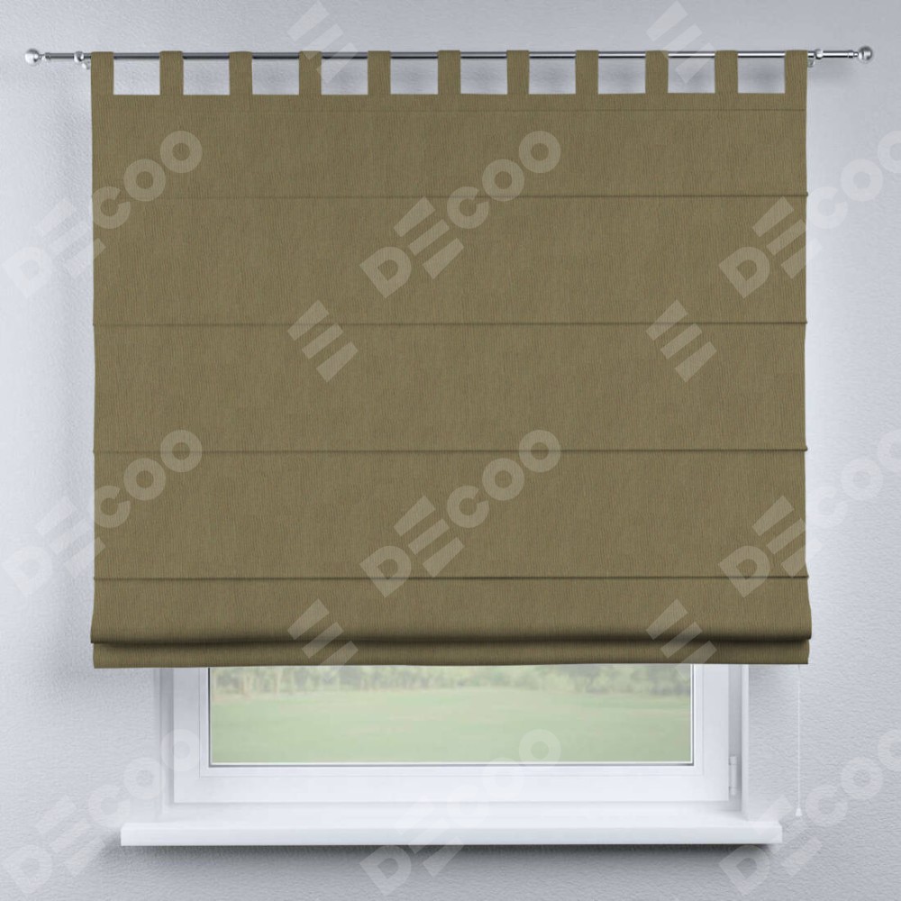 Римская штора производителя «Cortin», используется для проёма, пошита из ткани блэкаут однотонный бежево-золотой, артикул ткани 12095−2. Данная модель пошита на петлях, комплектуется на выбор круглым карнизом и подходит для монтажа на стену. Римская штора на петлях имеет простую систему регулировки высоты, отличительным преимуществом данной модели является простой способ монтажа. Достаточно повесить ее на трубу и штора готова!
