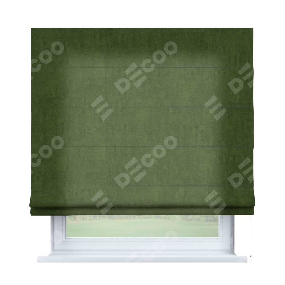 Римская штора производителя «Cortin», используется для проёма, пошита из ткани вельвет тёмно-салатовый, артикул ткани 33805. Имеет универсальный механизм и подходит для монтажа: на потолок, на стену и в нишу.