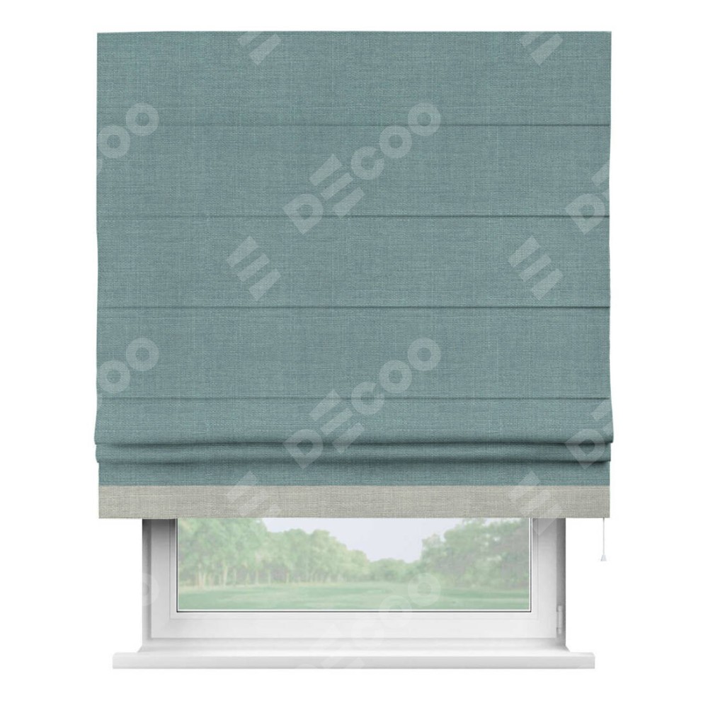 Римская штора «Кортин» с отделкой кантом Джестер, для проема, лён голубой