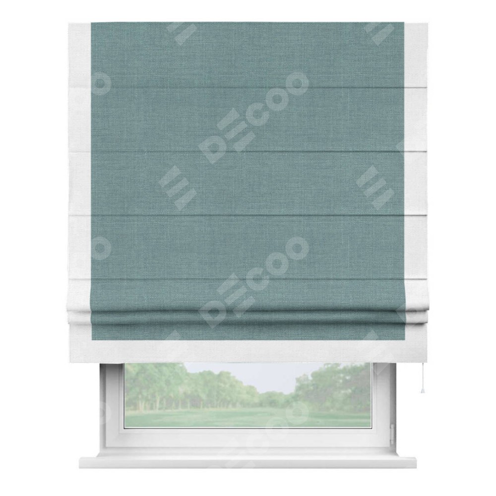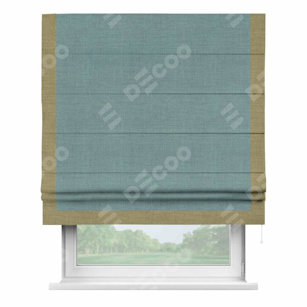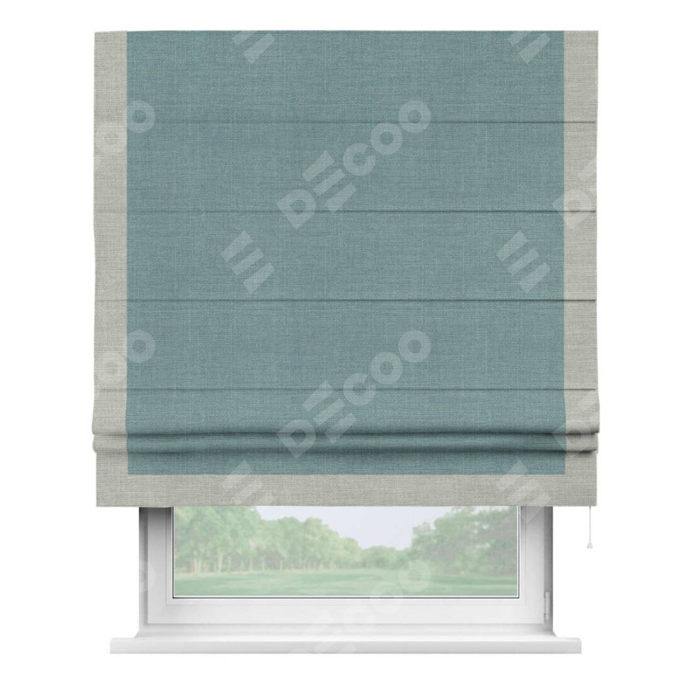 Римская штора «Кортин», отделка кантом Виктория, для проема, лён голубой