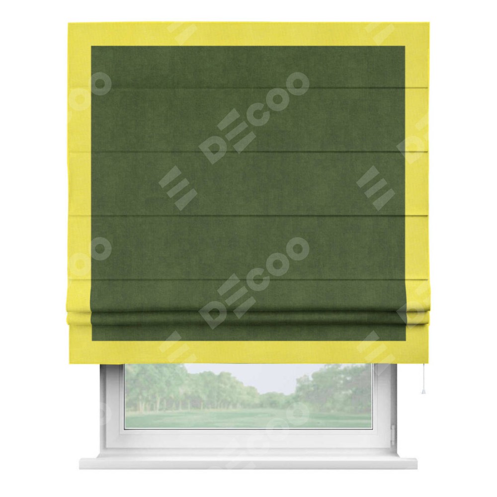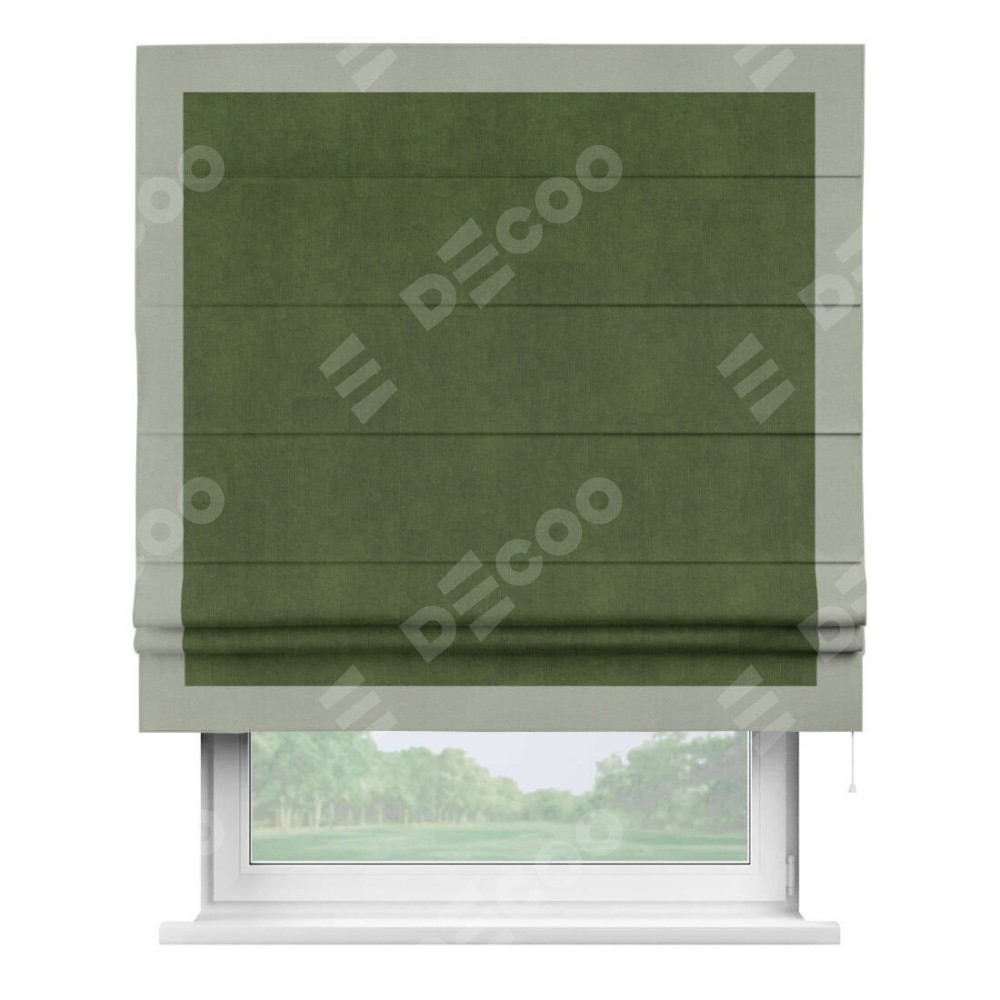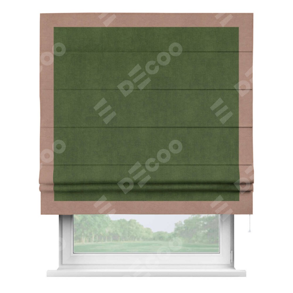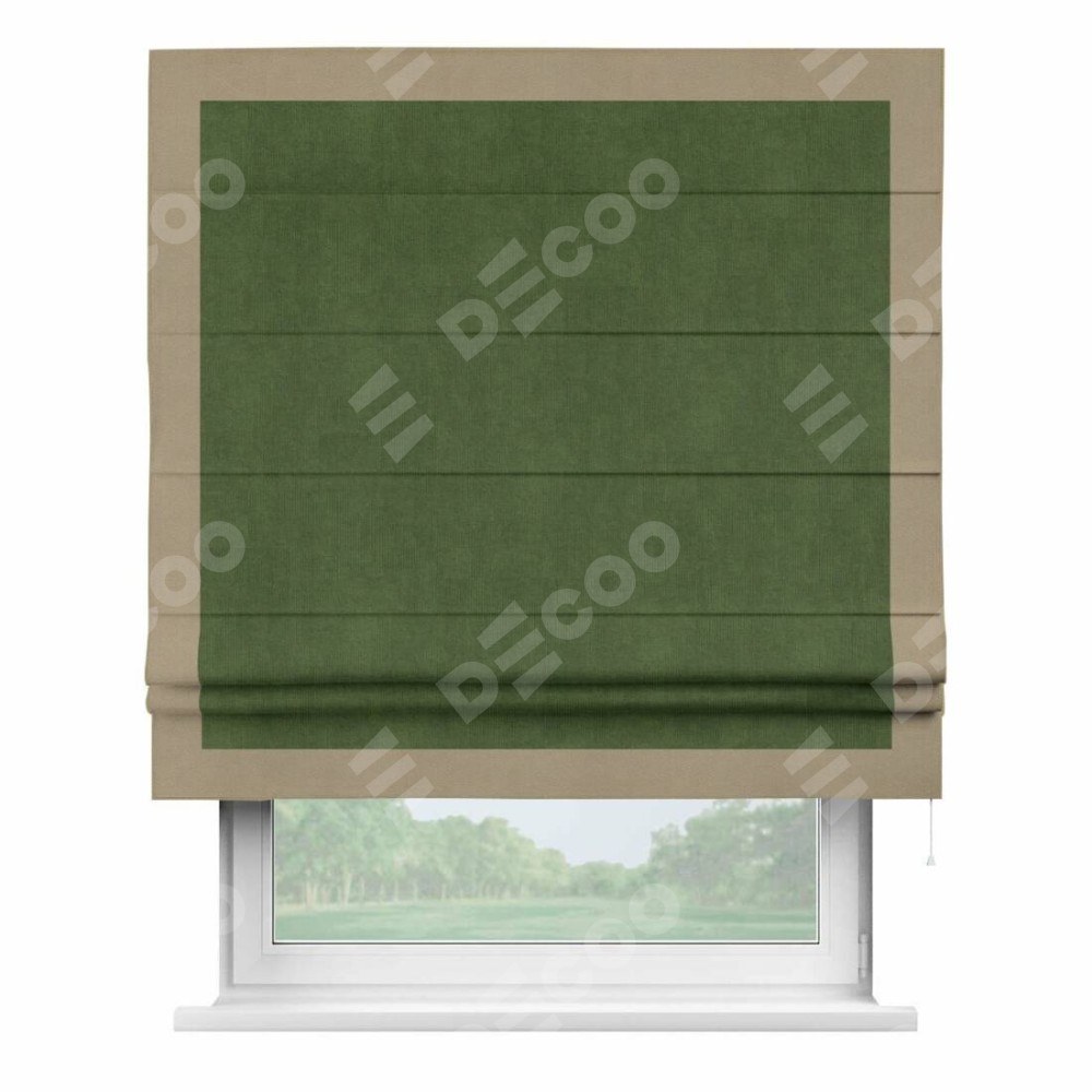 Римская штора «Кортин» с кантом Чесс, для проема, ткань вельвет тёмно-салатовый