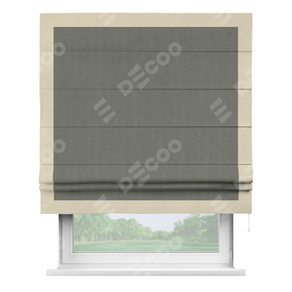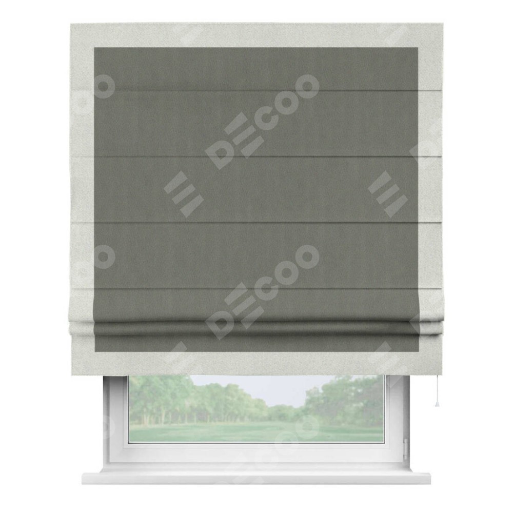 Римская штора «Кортин» с кантом Чесс, для проема, ткань блэкаут однотонный тёмно-серый