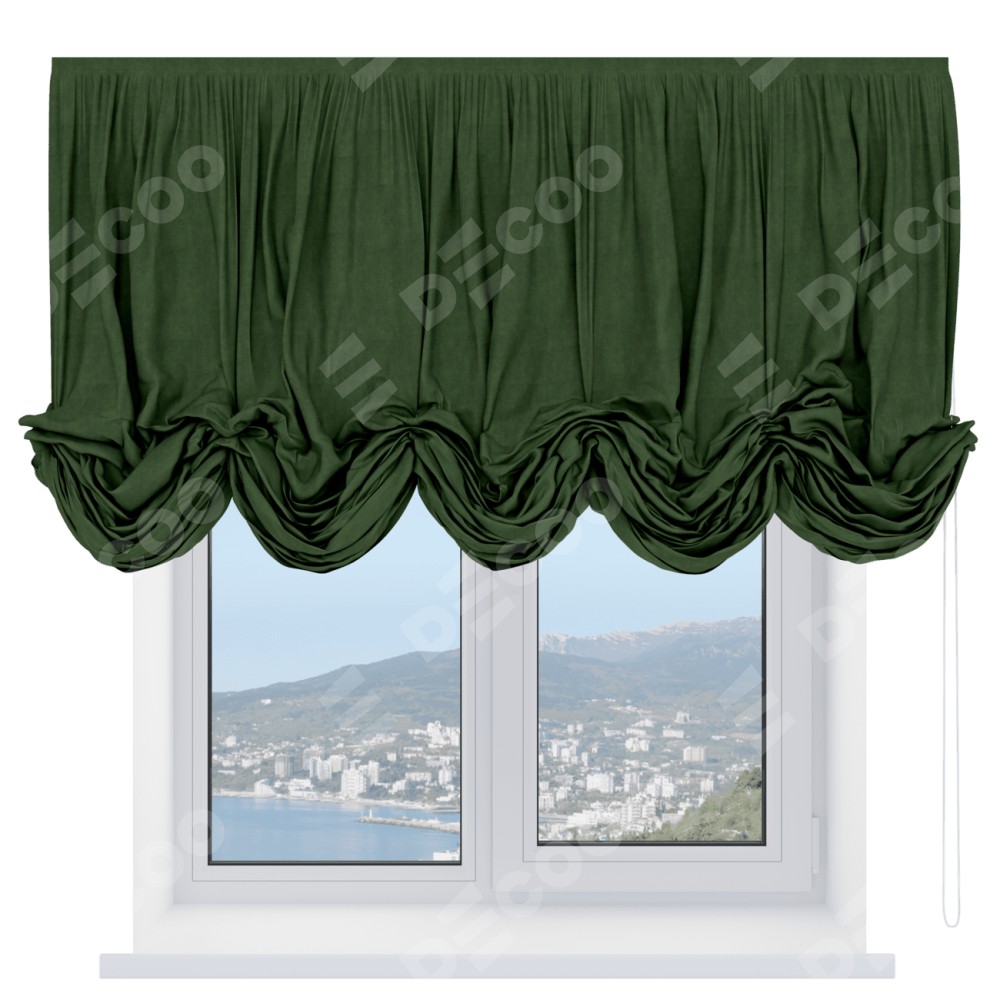 Австрийская штора «Кортин», вельвет тёмно-салатовый