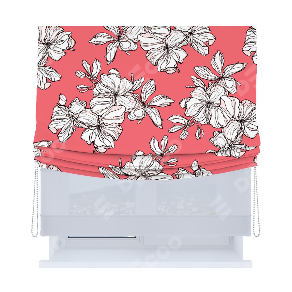 Римская штора день-ночь производителя «Cortin», используется для проёма, пошита из двух полотен, с лицевой блэкаут с нанесением сублимационной печати «Белые цветы», вторая ткань тюль (по стандарту комплектуется тюль белого цвета артикул V-01). Имеет универсальный механизм и подходит для монтажа: на потолок, на стену и в нишу. Удобное управление каждой шторой отдельно.