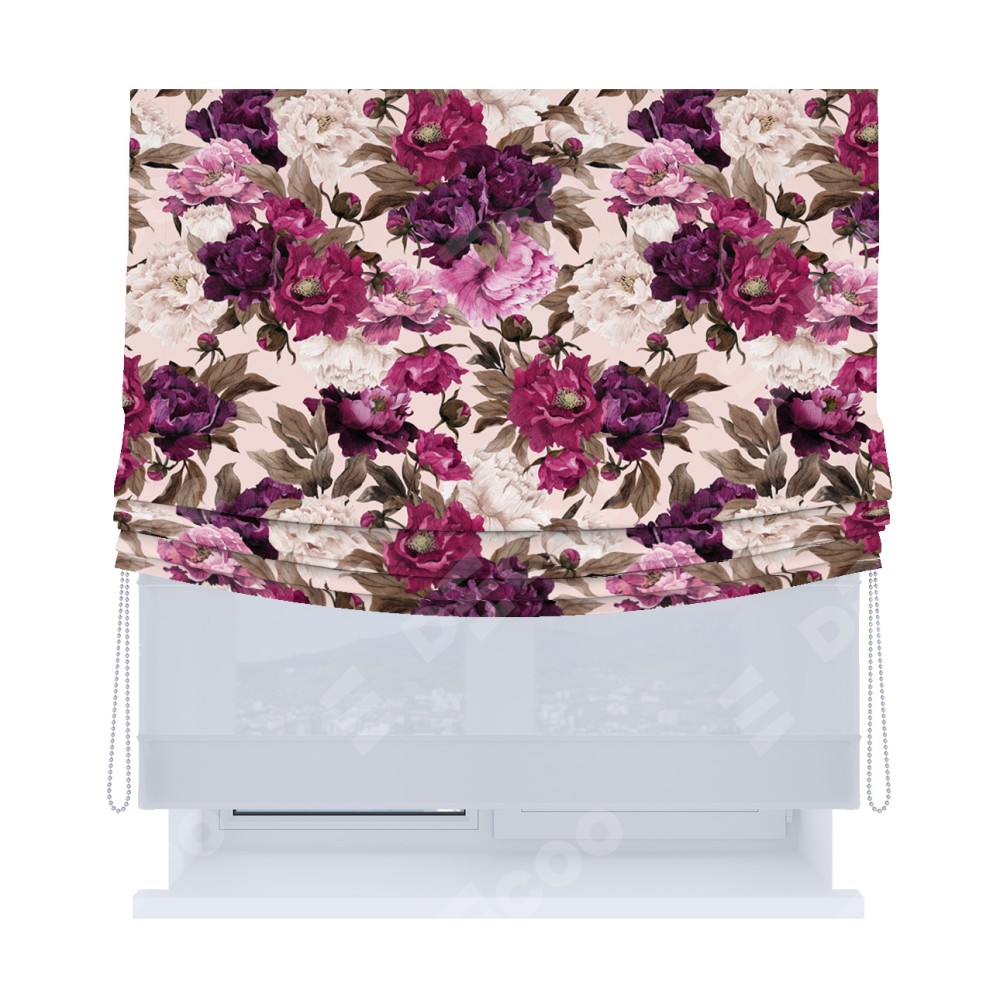 Римская штора «Кортин», день-ночь с мягкими складками, «Великолепные пионы»
