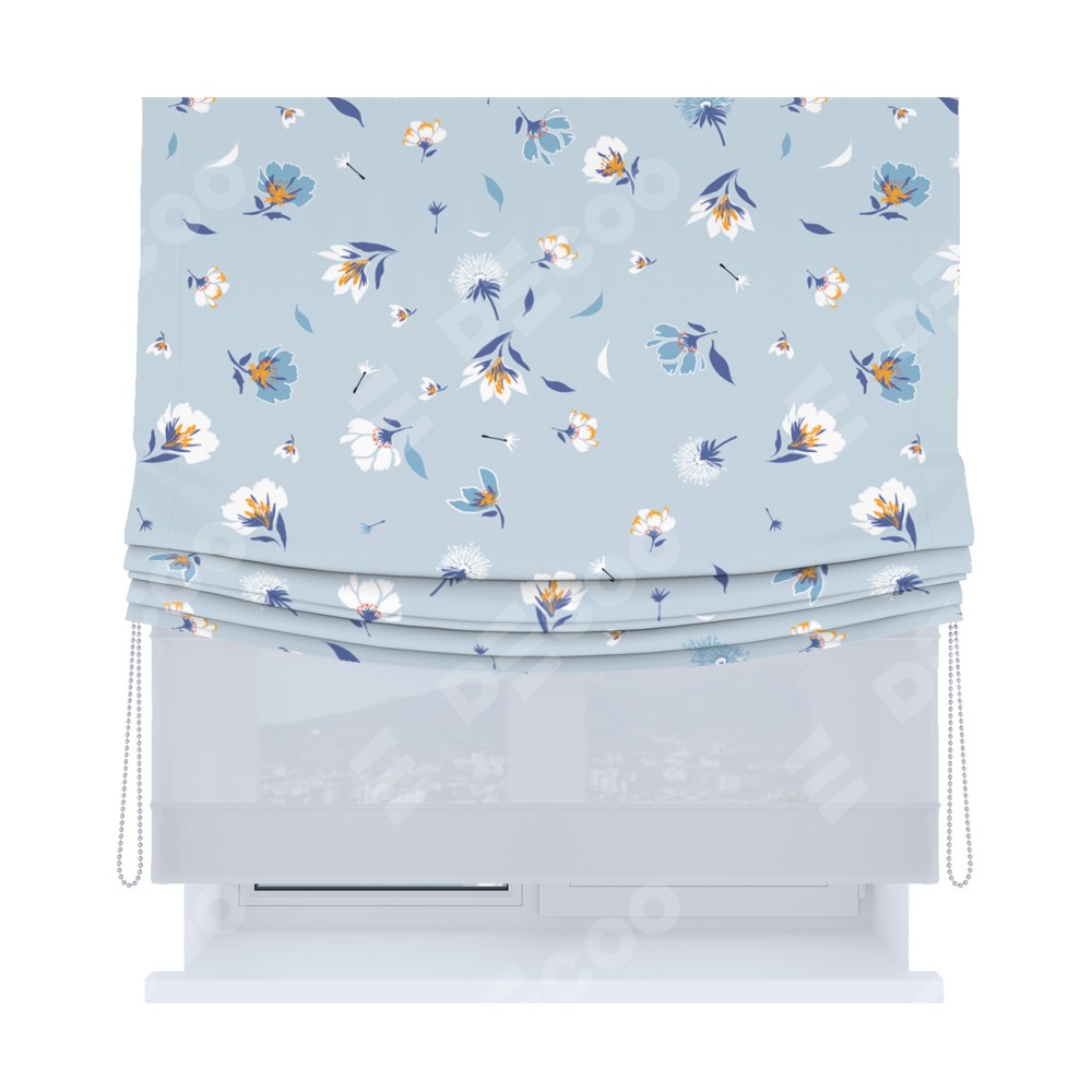 Римская штора «Кортин», день-ночь с мягкими складками, «Голубые цветы»