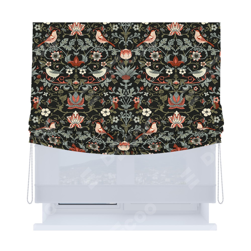 Римская штора «Кортин», день-ночь с мягкими складками, «Зачарованные птицы»