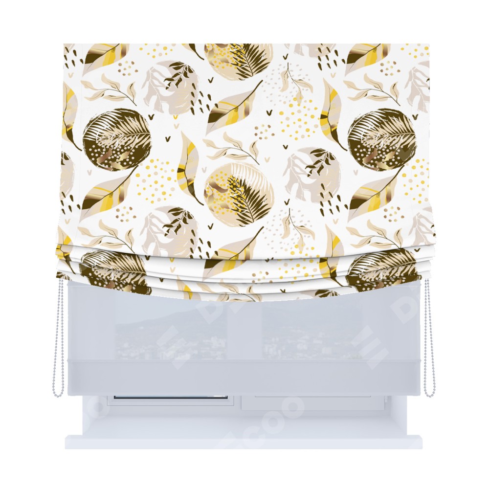 Римская штора «Кортин», день-ночь с мягкими складками, «Золотые листья»