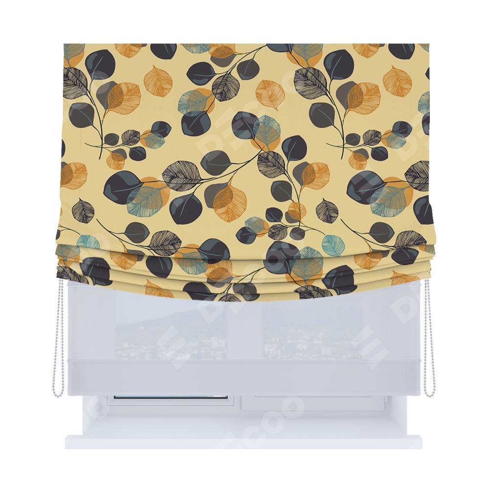 Римская штора «Кортин», день-ночь с мягкими складками, «Листья в янтаре»