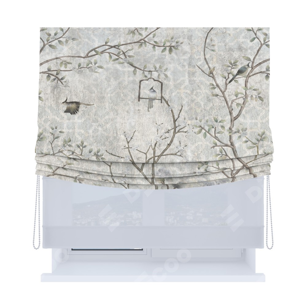 Римская штора «Кортин», день-ночь с мягкими складками, «Лунный сад»