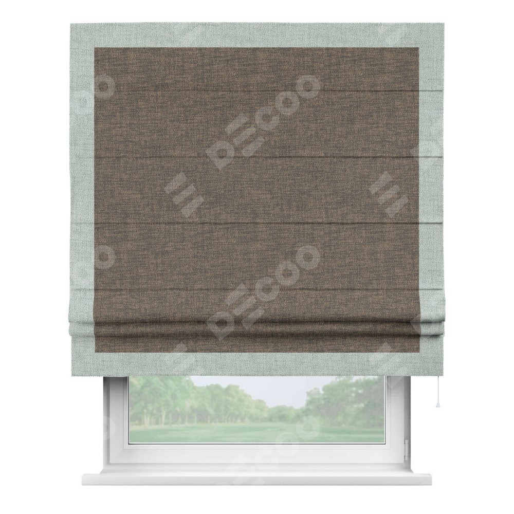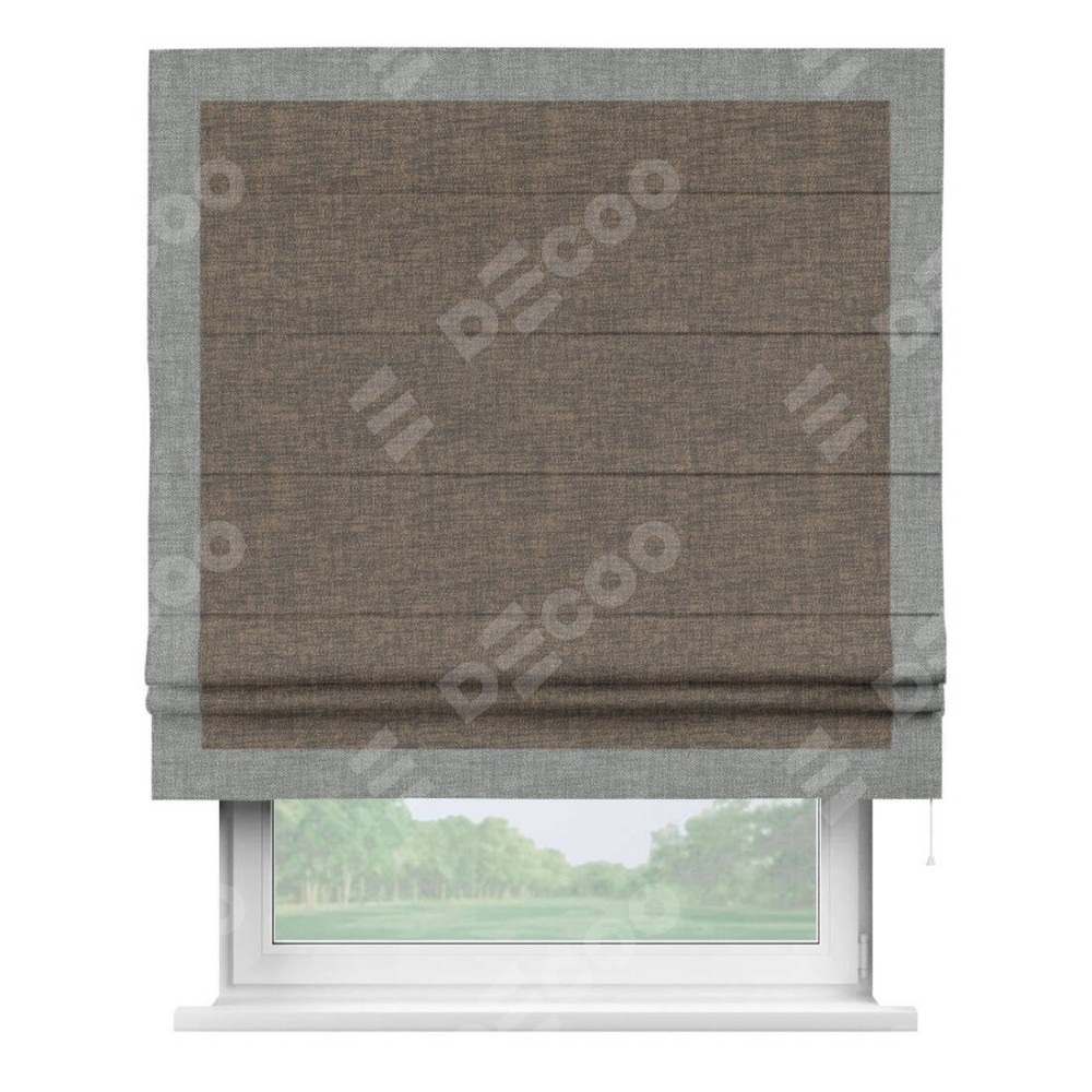 Римская штора «Кортин» с кантом Чесс, для проема, ткань рогожка димаут, коричневый