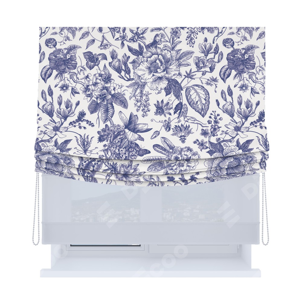 Римская штора «Кортин», день-ночь с мягкими складками, «Прованс в синем»