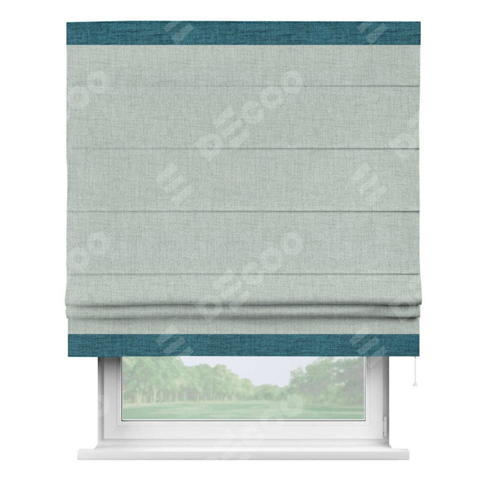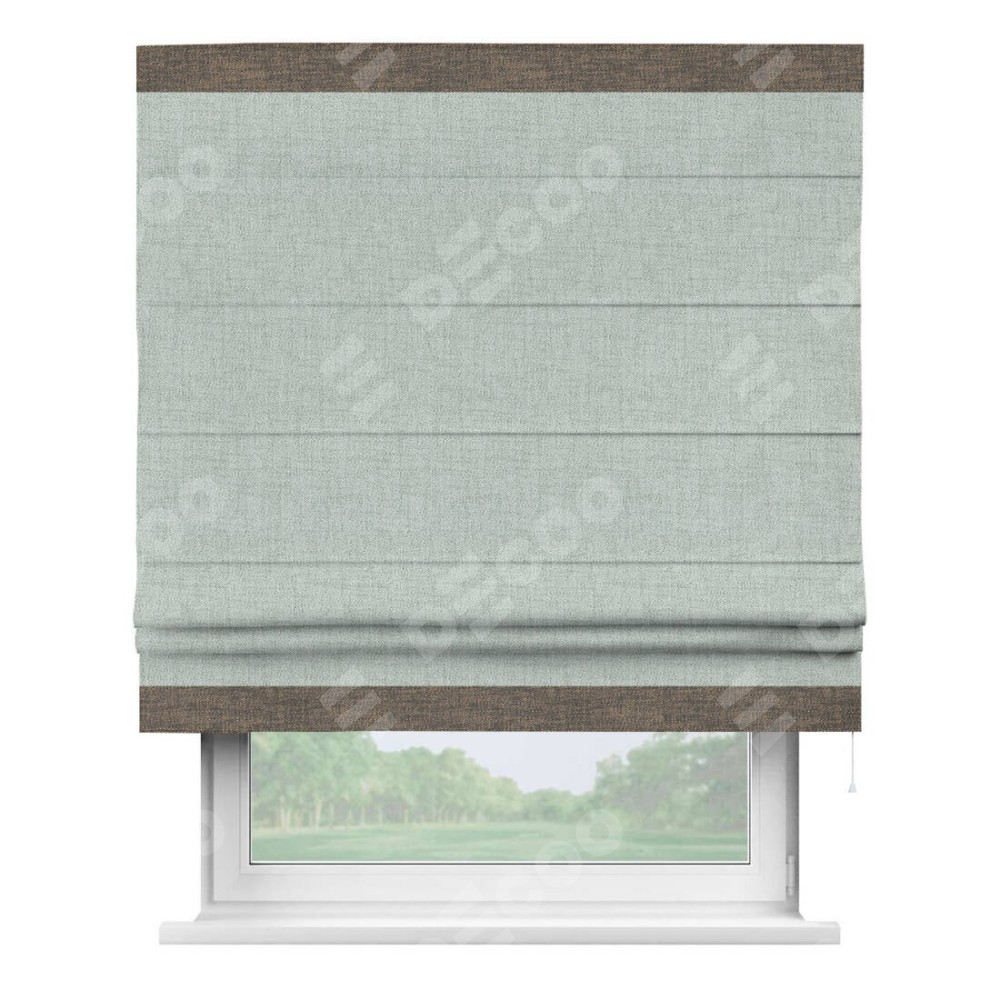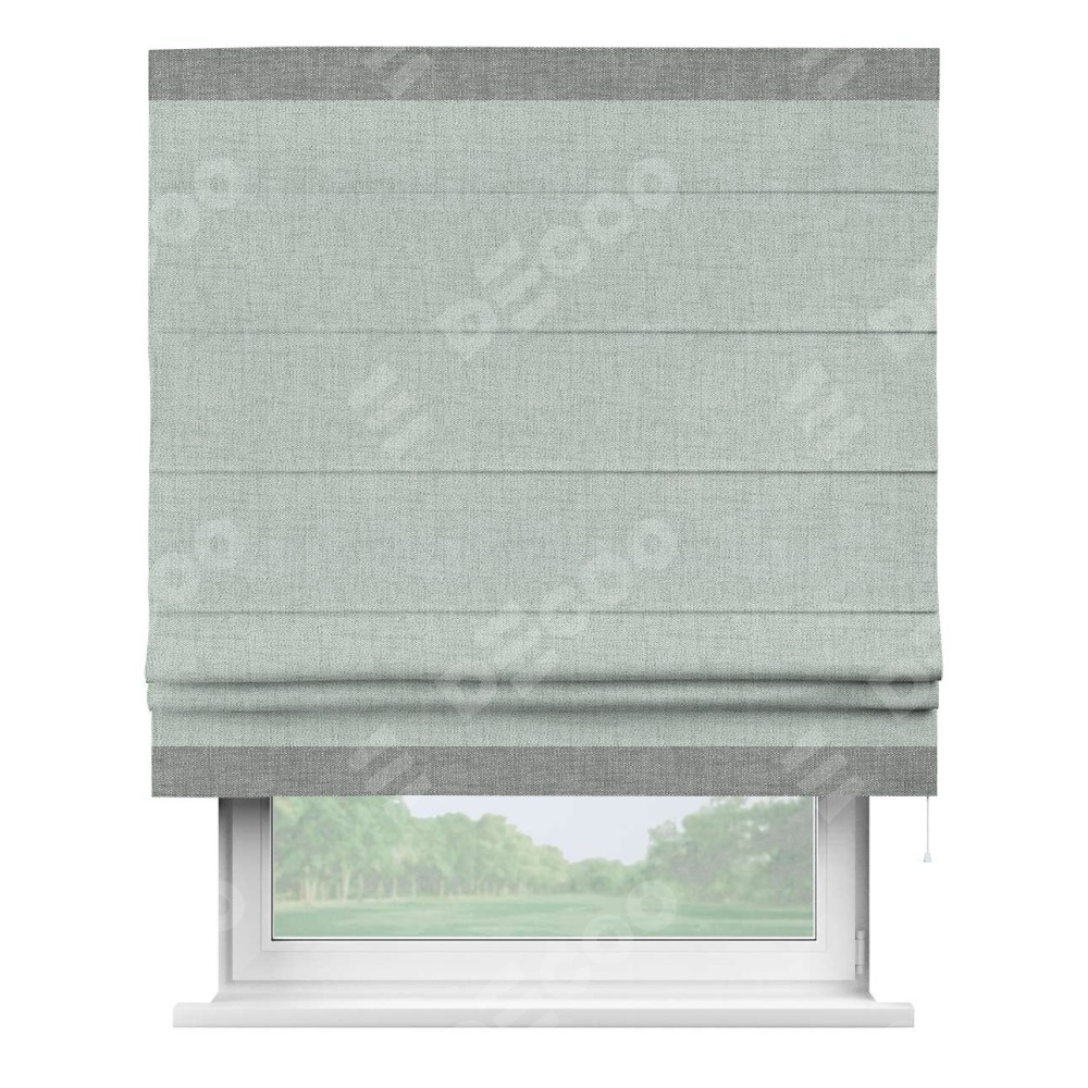 Римская штора производителя «Cortin», используется для проёма, пошита из ткани рогожка димаут серый, артикул 80426. Отделка шторы кантом «Горизонт», ткань для канта используется из рогожки димаут разной расцветки на выбор. Имеет универсальный механизм и подходит для монтажа: на потолок, на стену и в нишу.