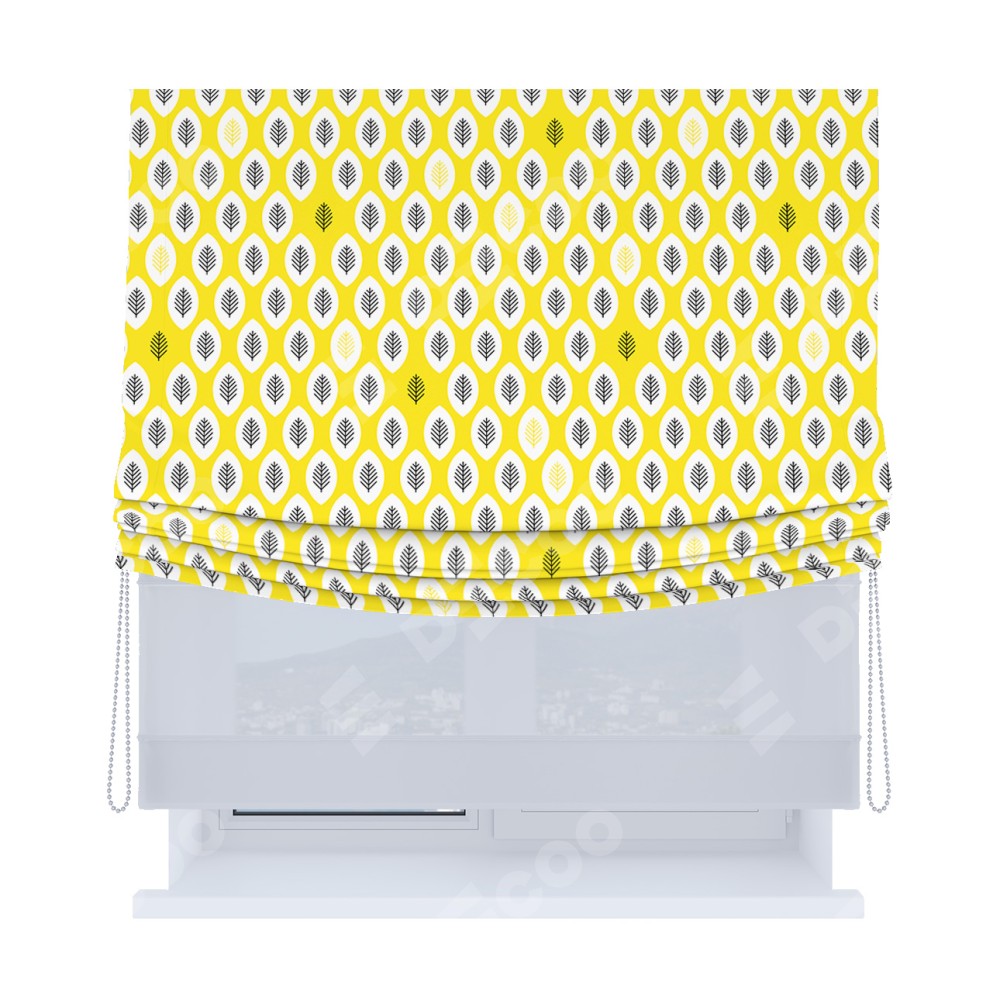 Римская штора «Кортин», день-ночь с мягкими складками, «Солнечные листья»