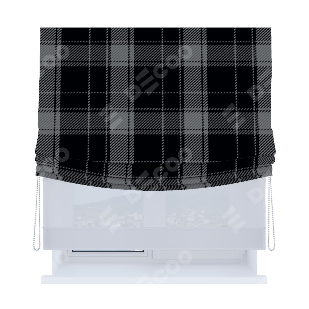 Римская штора день-ночь производителя «Cortin», используется для проёма, пошита из двух полотен, с лицевой блэкаут с нанесением сублимационной печати «Стильная клетка», вторая ткань тюль (по стандарту комплектуется тюль белого цвета артикул V-01). Имеет универсальный механизм и подходит для монтажа: на потолок, на стену и в нишу. Удобное управление каждой шторой отдельно.