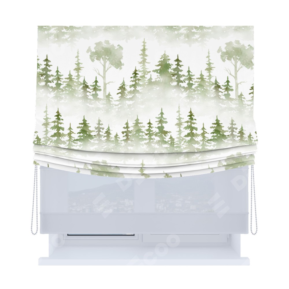 Римская штора «Кортин», день-ночь с мягкими складками, «Туманный лес»