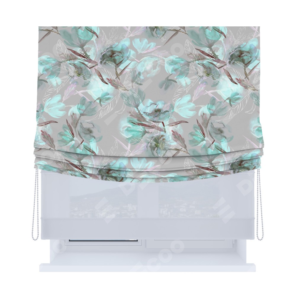 Римская штора «Кортин», день-ночь с мягкими складками, «Цветочная акварель»